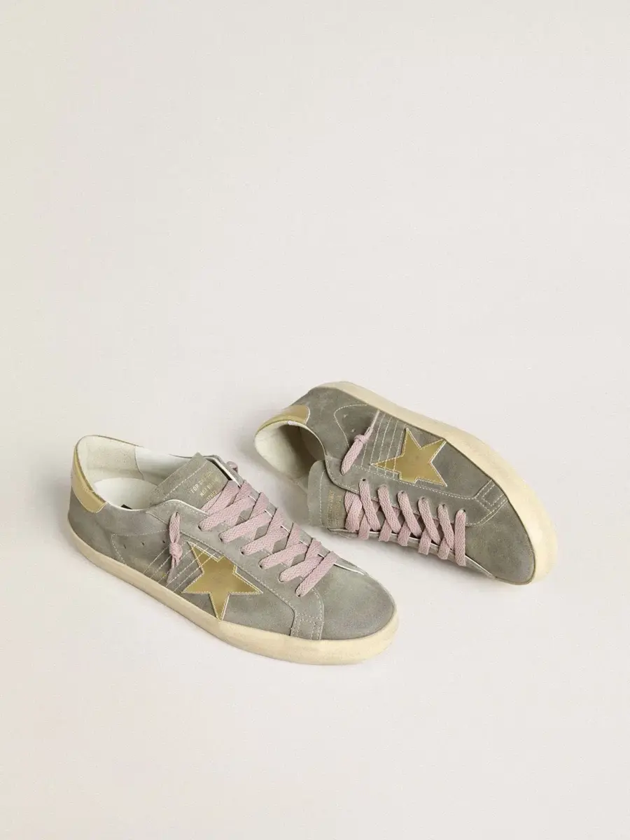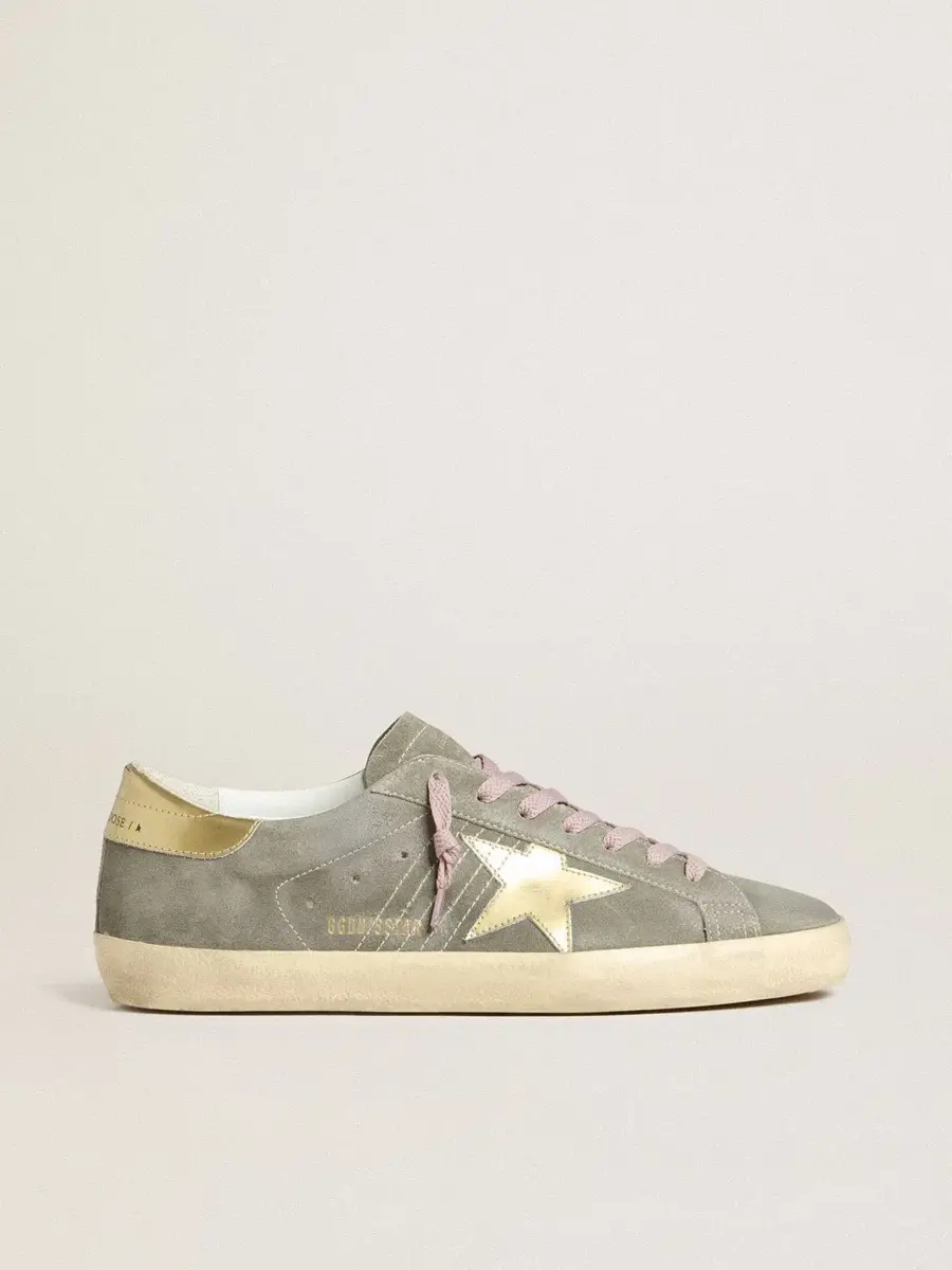 Un icono atemporal, pero en constante evolución. En Golden, nos encanta retocar nuestros clásicos constantemente, siempre desde un nuevo ángulo. Estas Super-Star con parte superior de ante gris cuentan con una estrella y una lengüeta en el talón de cuero metalizado dorado. Y los cordones rosas añaden el toque final.