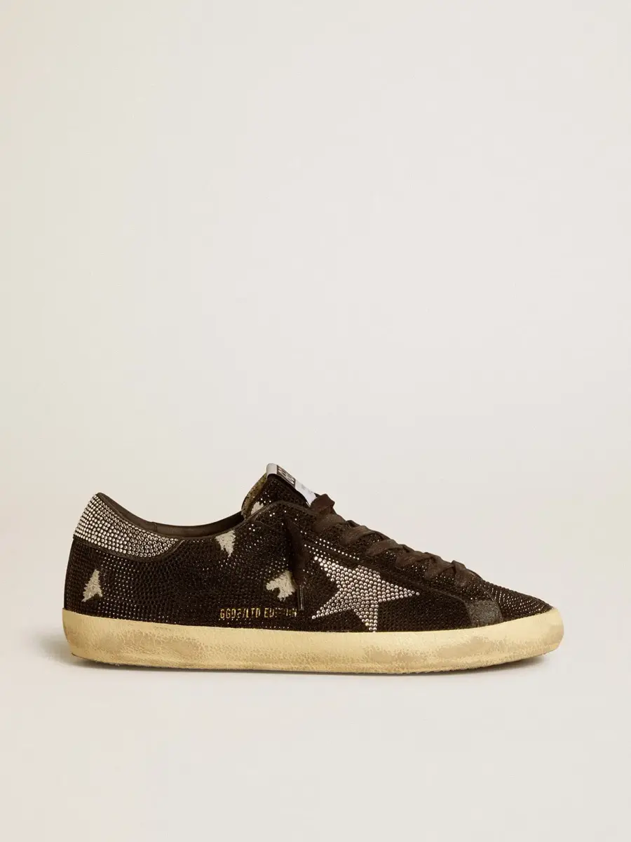 Un icono atemporal, pero en constante evolución. En Golden, nos encanta tomar nuestros clásicos y reelaborarlos constantemente, siempre desde un nuevo ángulo. Estas Super-Star para hombre cuentan con una estrella de cristal Swarovski plateado y una lengüeta en el talón sobre una parte superior de ante negro desgastado adornada con cristales Swarovski tono sobre tono. Los cordones negros añaden el toque final.