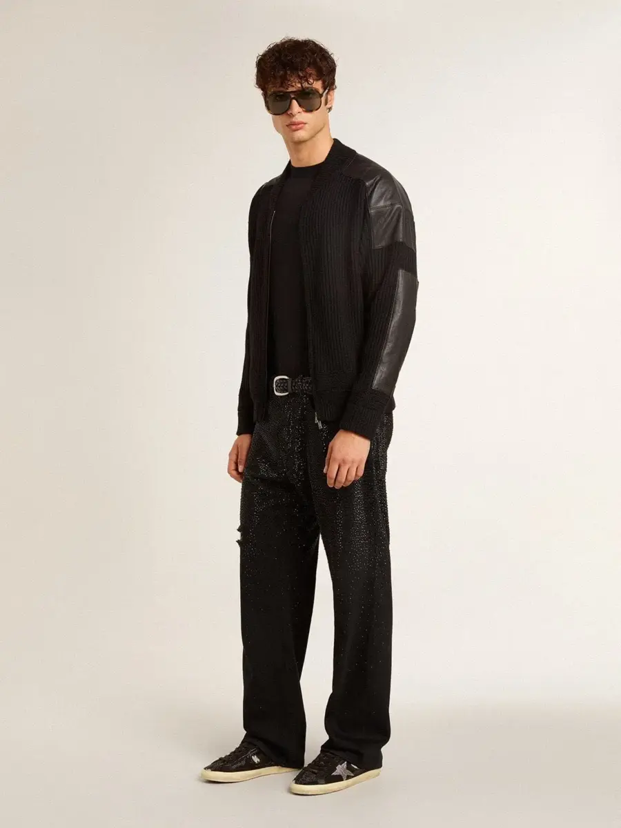 - Parte superior de ante negro con efecto desgastado y cristales Swarovski tono sobre tono