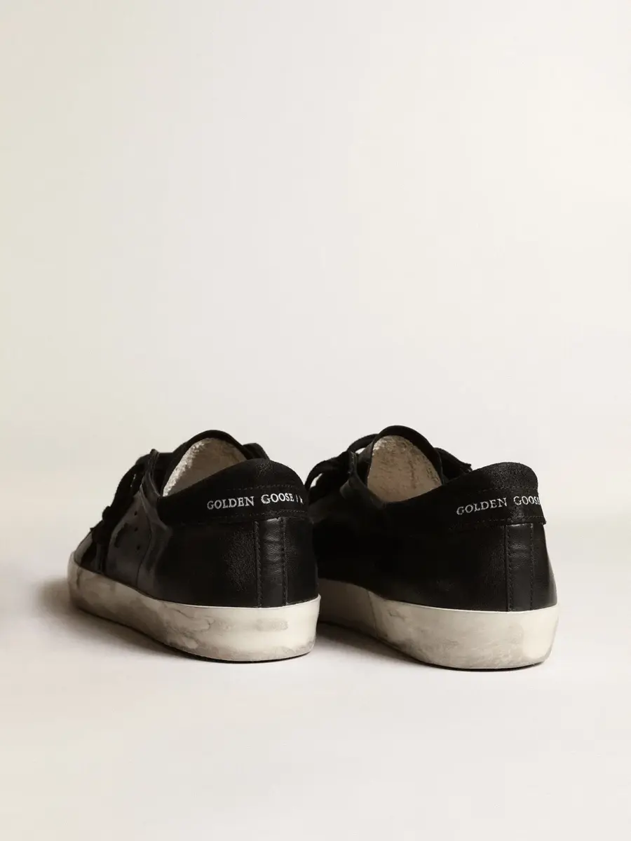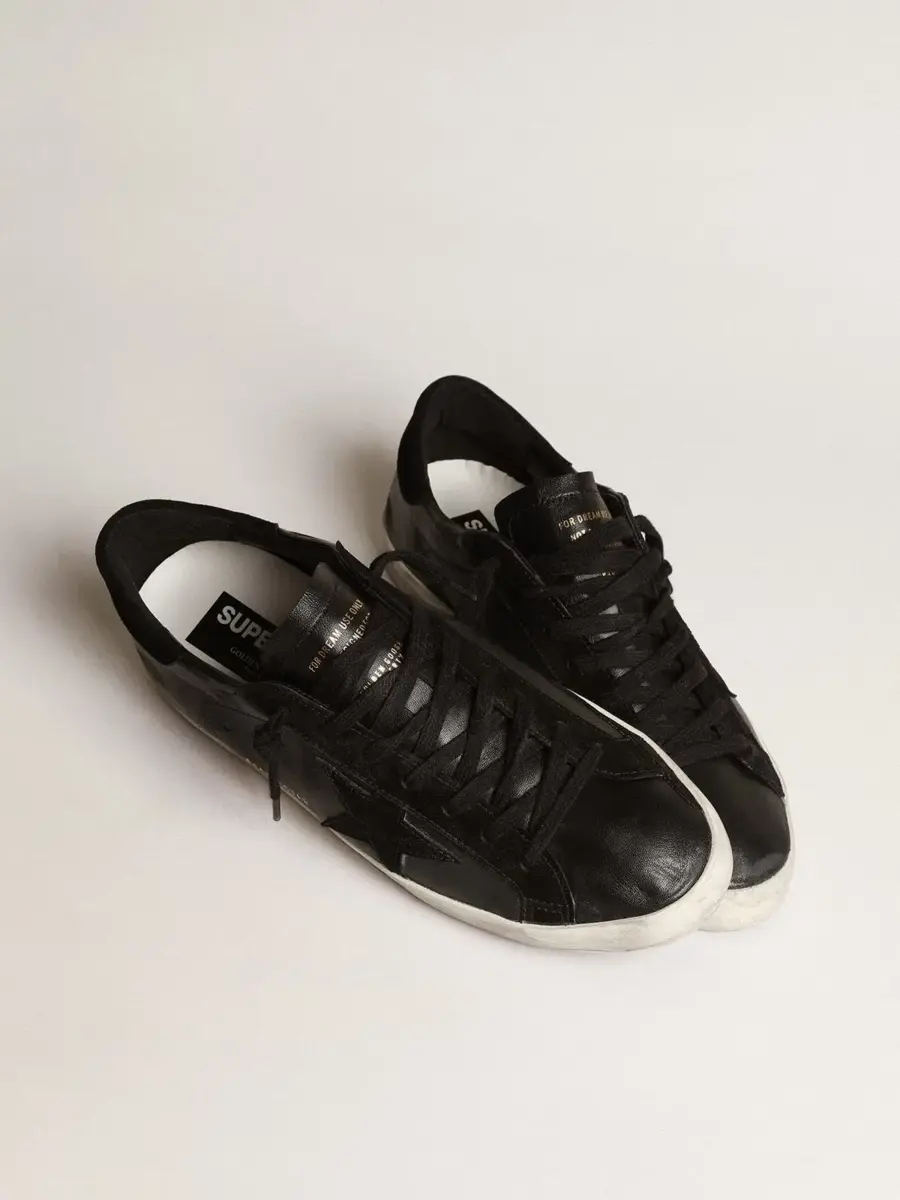 Un icono atemporal, pero en constante evolución. En Golden nos encanta retocar nuestros clásicos constantemente, siempre desde un nuevo ángulo. La versión para hombre de estas zapatillas Super-Star presenta una estrella y una lengüeta en el talón de ante negro sobre una parte superior de piel napa negra. Los cordones negros añaden el toque final.