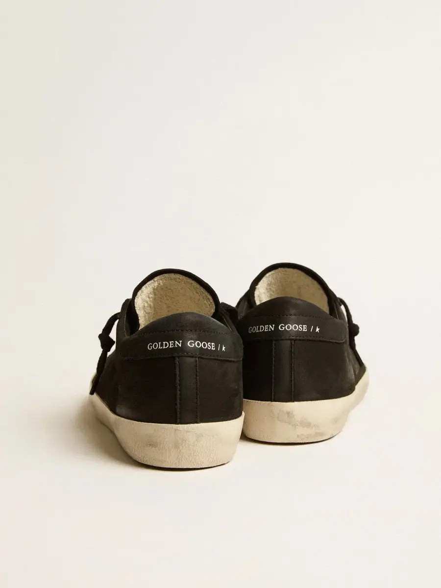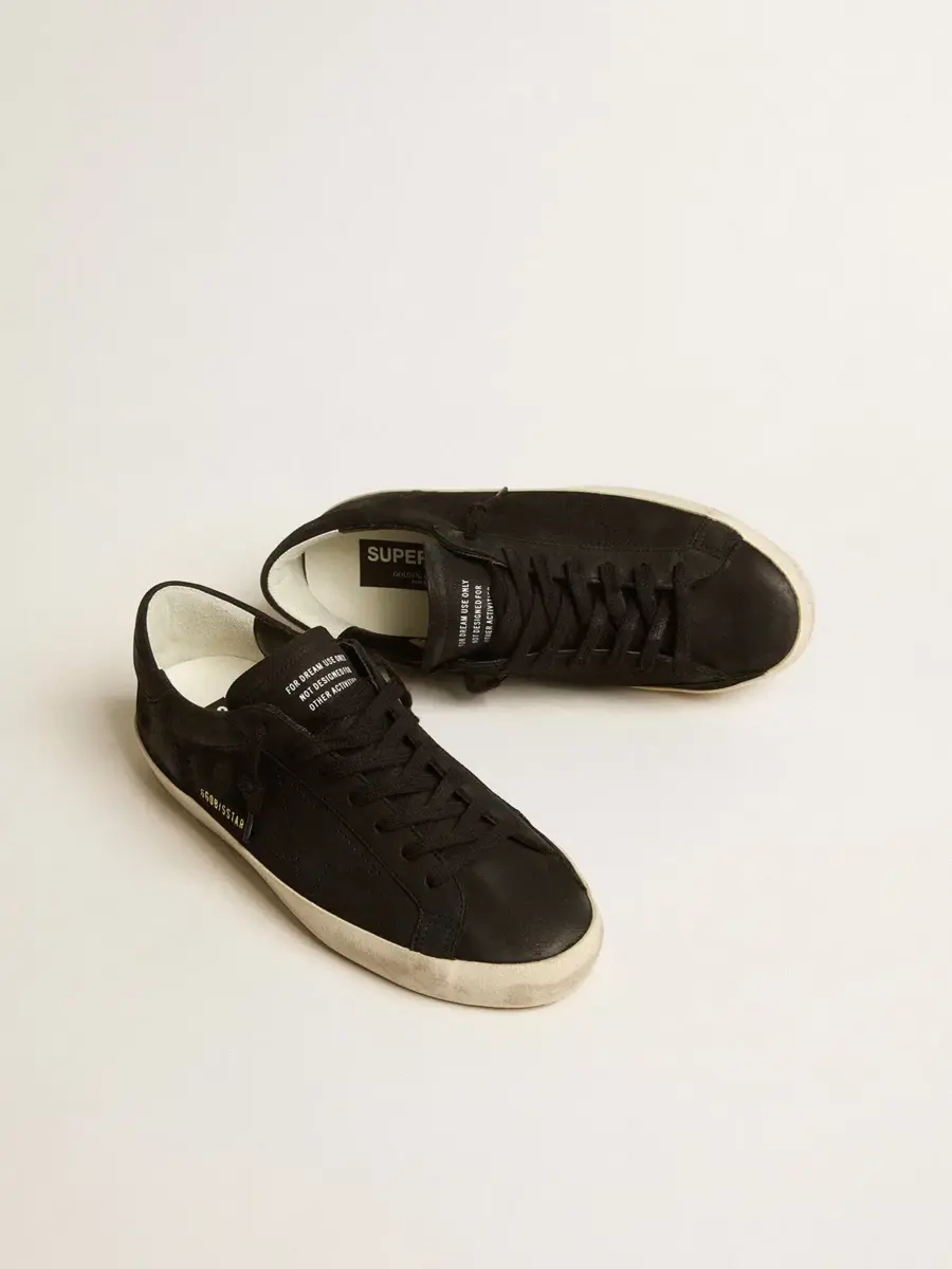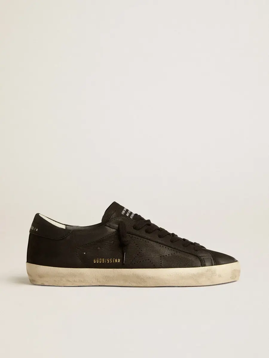 Un icono atemporal, pero en constante evolución. En Golden nos encanta retocar nuestros clásicos constantemente, siempre desde un nuevo ángulo. Estas zapatillas Super-Star con parte superior de nubuck negro cuentan con una estrella perforada tono sobre tono y una lengüeta en el talón de nubuck negro. Los cordones negros añaden el toque final.