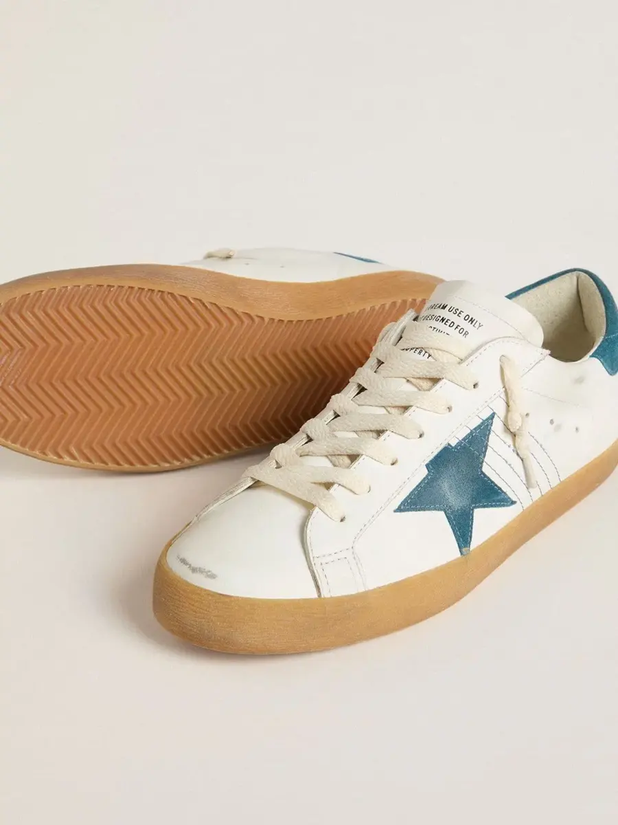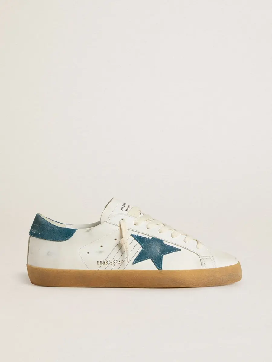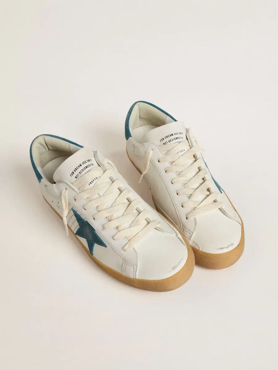 Un icono atemporal, pero en constante evolución. En Golden, nos encanta retocar nuestros clásicos constantemente, siempre desde un nuevo ángulo. Estas Super-Star con parte superior de piel blanca cuentan con una estrella y una lengüeta en el talón de ante azul petróleo. Las costuras azul petróleo y los cordones blancos añaden el toque final.