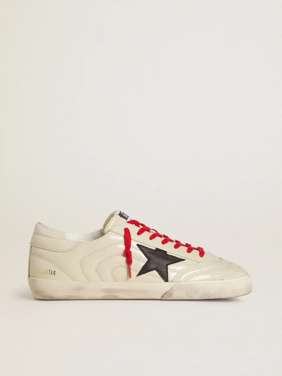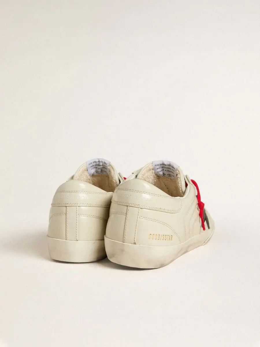 Un icono atemporal, pero en constante evolución. En Golden, nos encanta retocar nuestros clásicos constantemente, siempre desde un nuevo ángulo. Estas zapatillas Super-Star con parte superior de piel blanca brillante presentan un efecto matelassé con costuras tono sobre tono y una estrella de piel negra. La lengüeta del talón de piel blanca brillante y los cordones rojos añaden el toque final.