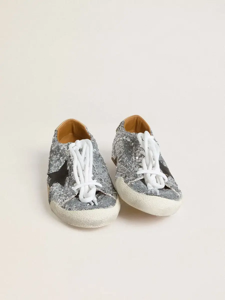 Sé el primero en valorar “True-Star para hombre con lentejuelas plateadas, estrella negra y lengüeta de cuero beige en el talón”