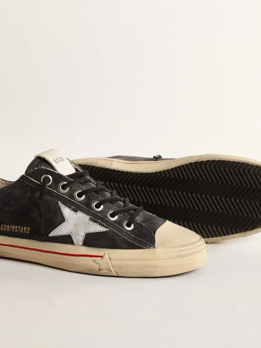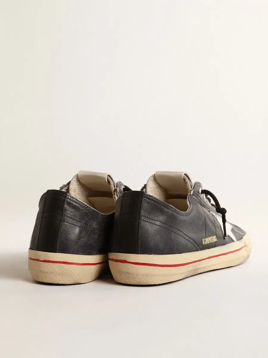 La belleza reside en la simplicidad: en nuestras zapatillas V-Star, una forma esencial se combina con detalles elegantes. Este modelo LTD, con una parte superior de piel azul oscuro con efecto vintage, cuenta con una estrella de piel metalizada plateada y una lengüeta en el talón de piel negra. La franja negra en la banda de refuerzo y los cordones negros añaden el toque final.