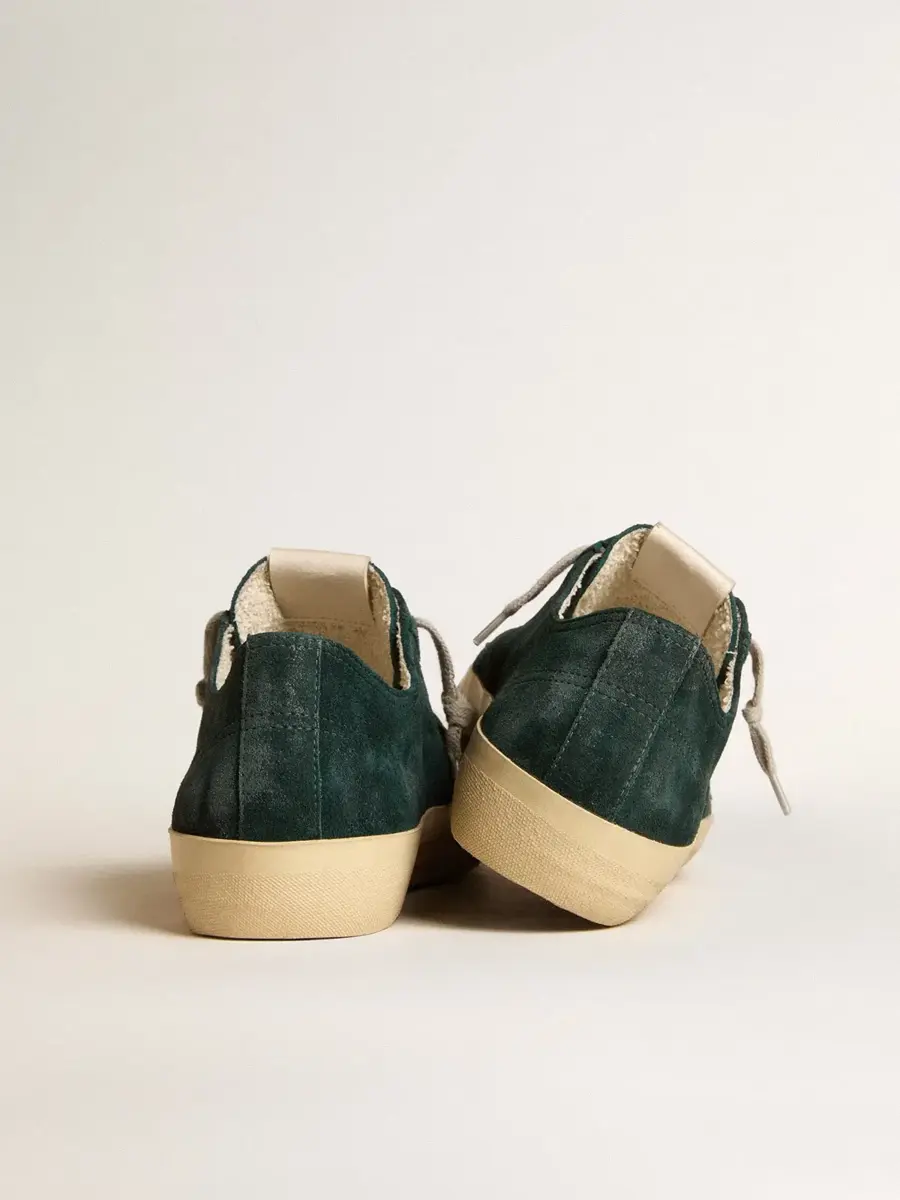La belleza reside en la simplicidad: en nuestras zapatillas V-Star, una forma esencial se combina con detalles elegantes. Este modelo con parte superior de ante verde bosque cuenta con una estrella de cuero blanco. La puntera de goma beige y los cordones gris hielo añaden el toque final.