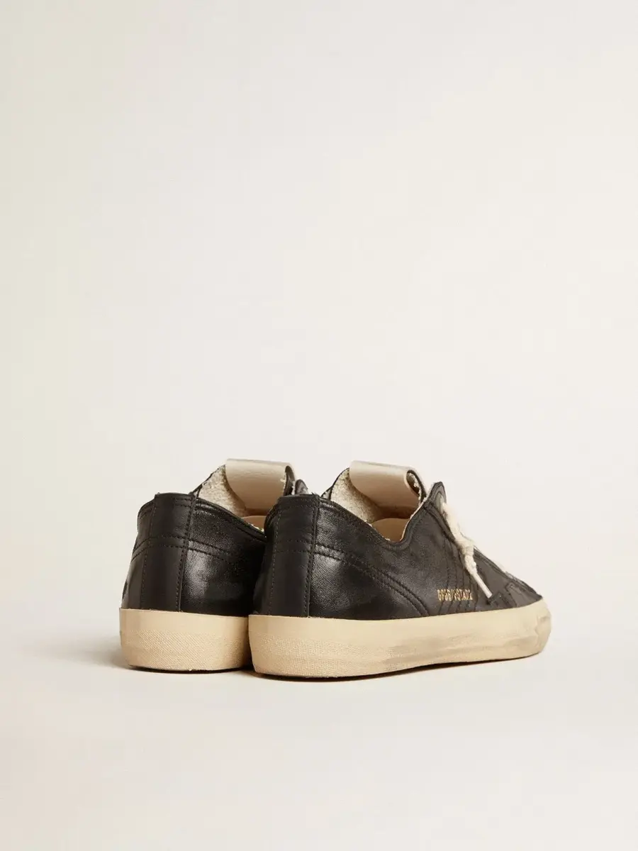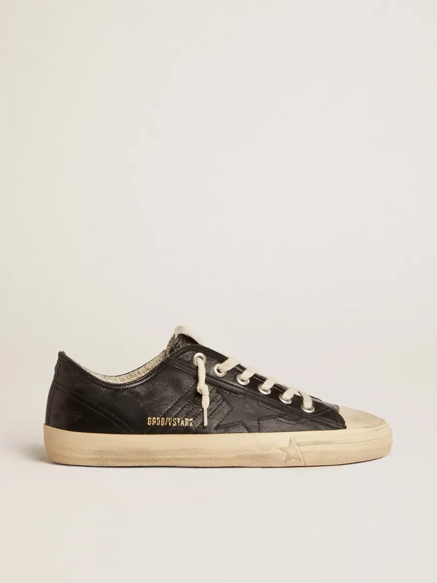 La belleza reside en la simplicidad: en nuestras zapatillas V-Star, una forma esencial se combina con detalles elegantes. Este modelo para hombre con parte superior de piel napa negra cuenta con una estrella de piel negra. La lengüeta del talón de piel negra y los cordones blancos añaden el toque final.