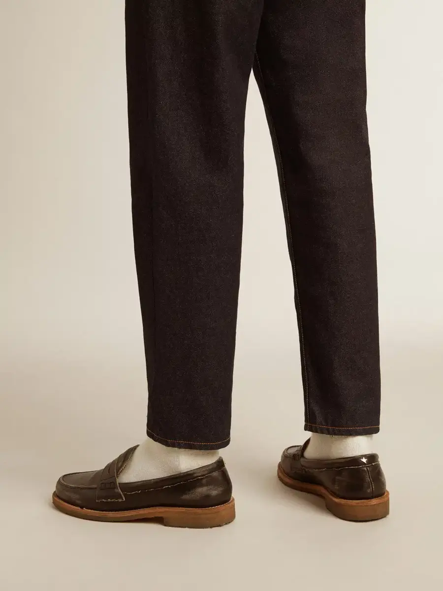 Un clásico atemporal reinterpretado al estilo Golden: Jerry reinterpreta con audacia la silueta atemporal del mocasín. Esta versión para hombre presenta una parte superior de piel negra con las letras GGDB en contraste en el lateral. La estrella dorada envejecida en la lengüeta del talón completa el look.