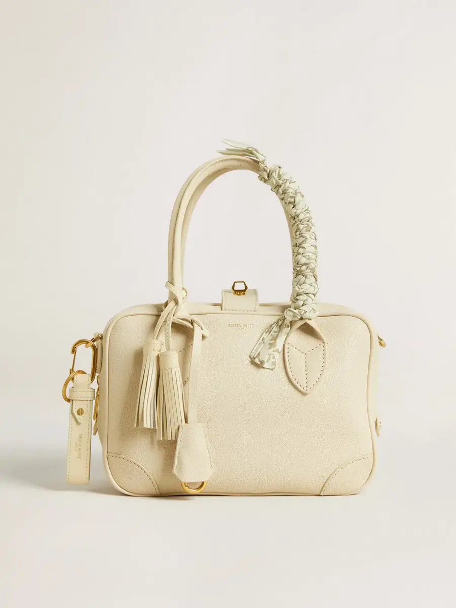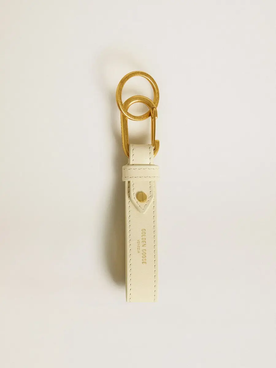 Diseñados para ser únicos y prácticos, estos accesorios de viaje son perfectos para tus aventuras por todo el mundo. En blanco desgastado, este llavero presenta detalles dorados y las letras Golden Goose en dorado en el centro.