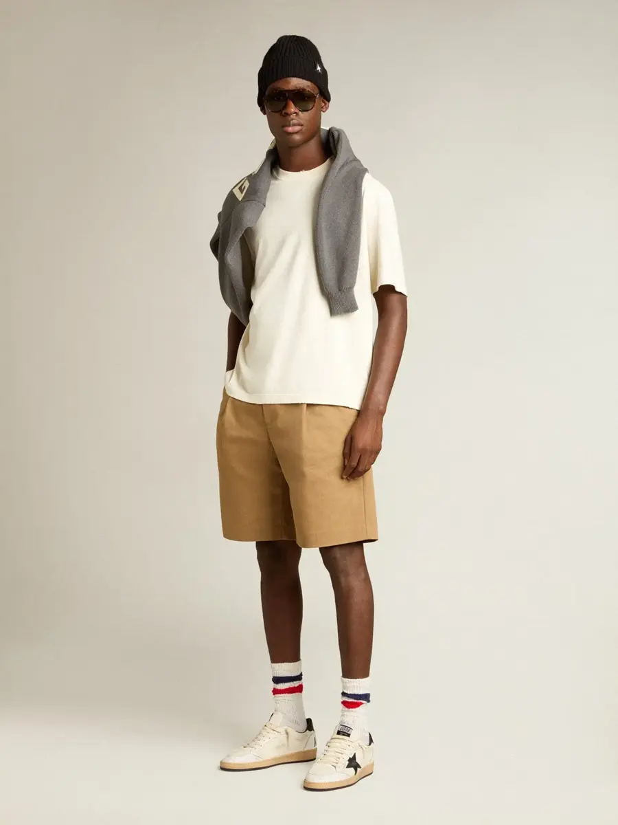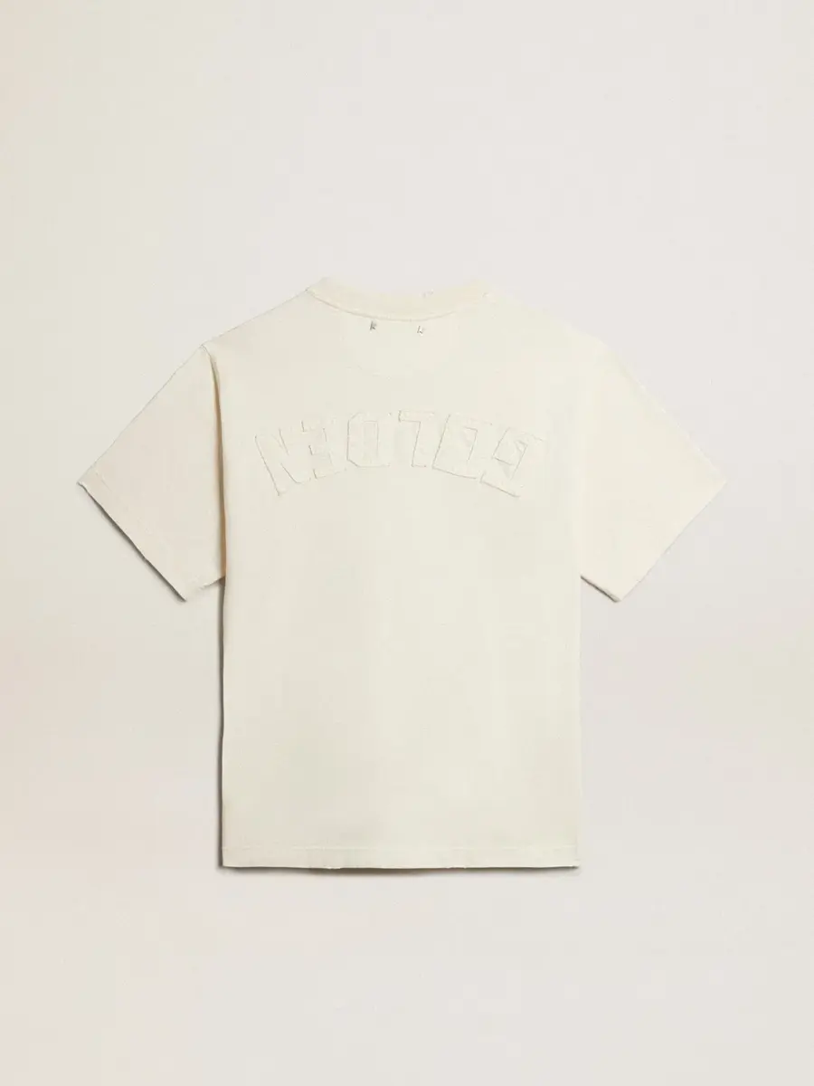 Una colección única y atemporal que encapsula el ADN de Golden Goose, diseñada para acompañarte cada día, en las buenas y en las malas, llueva o haga sol. Confeccionada en algodón blanco envejecido con un acabado desgastado, esta camiseta presenta el logotipo Golden en relieve en la parte trasera.
