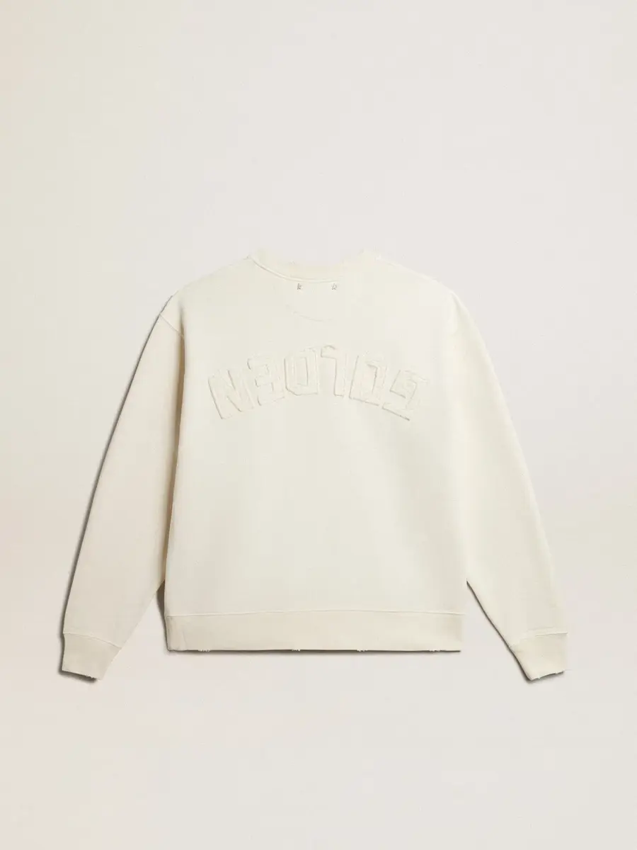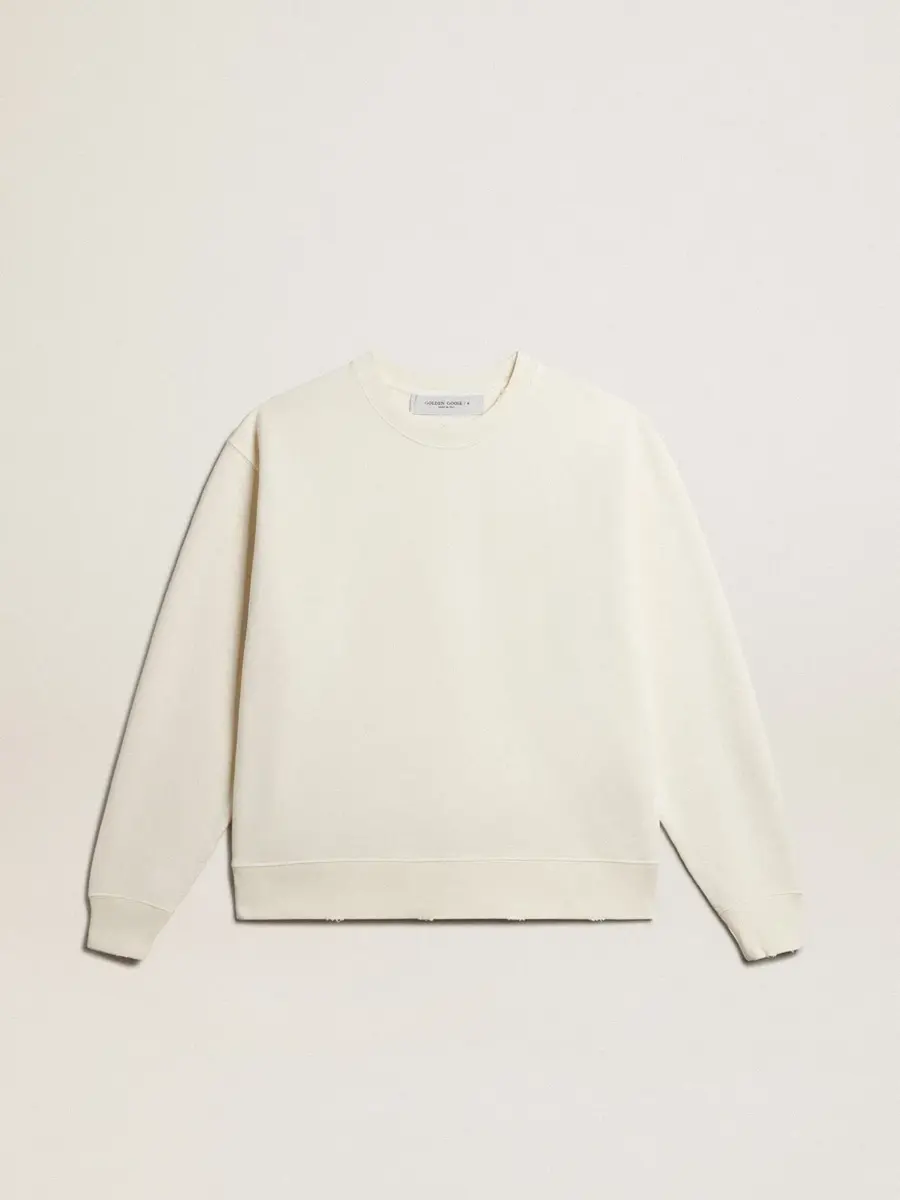 Una colección única y atemporal que encapsula el ADN de Golden Goose, diseñada para acompañarte cada día, en las buenas y en las malas, llueva o haga sol. Confeccionada en algodón blanco envejecido con acabado desgastado, esta sudadera presenta un logotipo Golden en relieve invertido en la espalda.