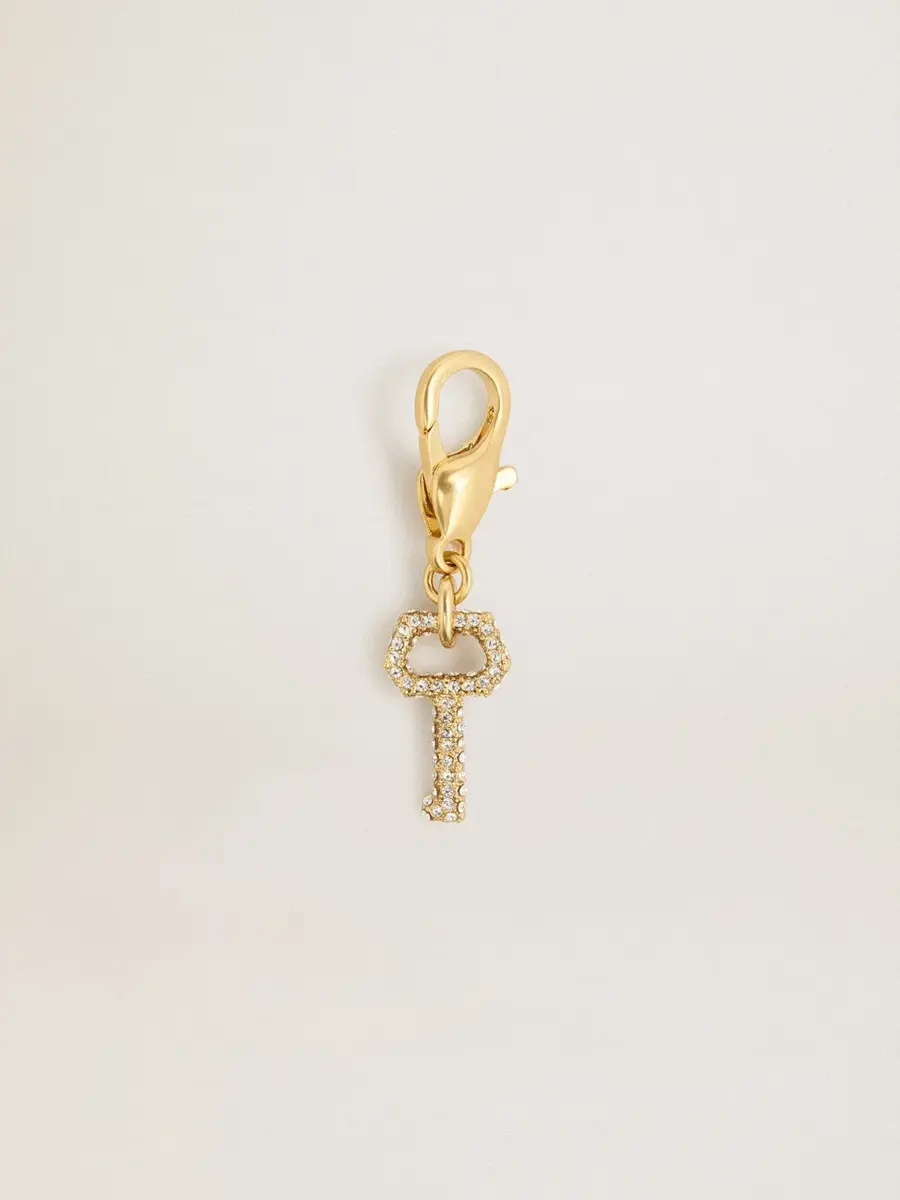 Tu historia se convierte en el accesorio más preciado para llevar contigo y tener siempre a mano. Fabricado en latón dorado, este charm en forma de llave adornado con cristales es el toque dorado que estabas buscando.
