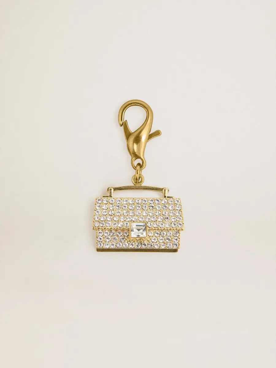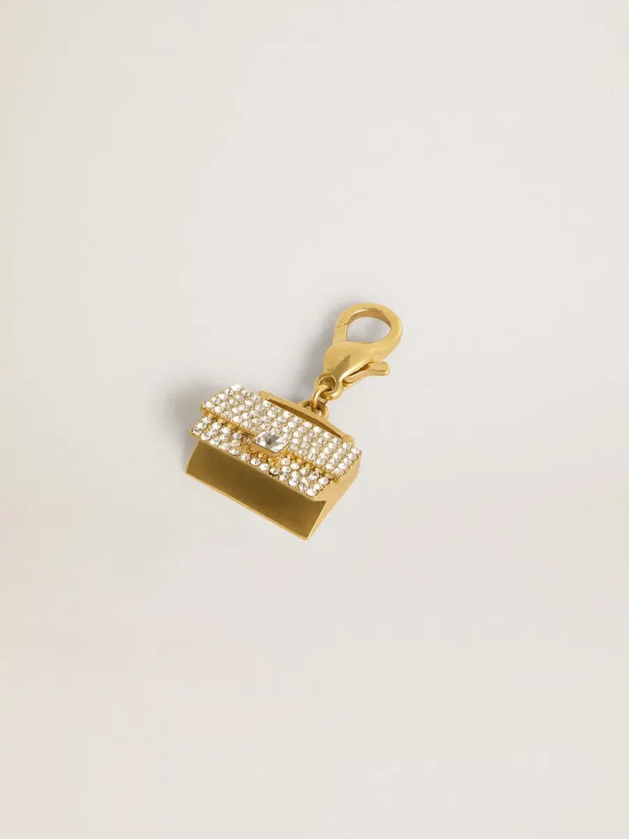 Tu historia se convierte en el accesorio más preciado para llevar contigo y tener siempre a mano. Fabricado en latón dorado, este charm con forma de monedero adornado con cristales es el toque dorado que estabas buscando.