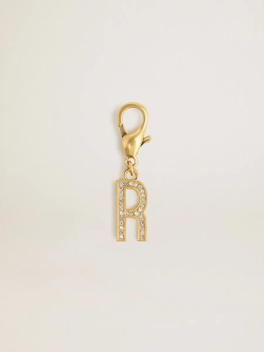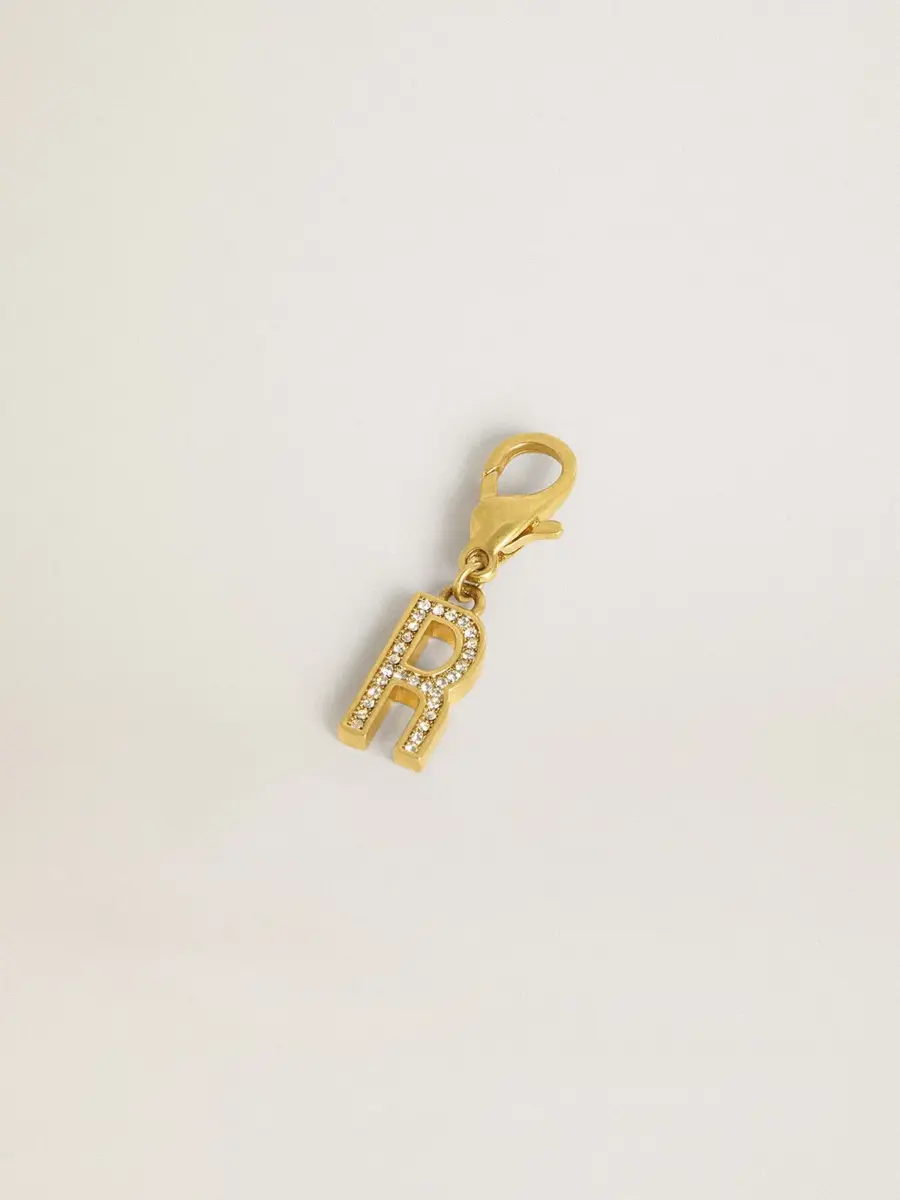 Tu historia se convierte en el accesorio más preciado para llevar contigo y tener siempre a mano. Fabricado en latón dorado, este charm con la letra R adornado con cristales es el toque dorado que estabas buscando.