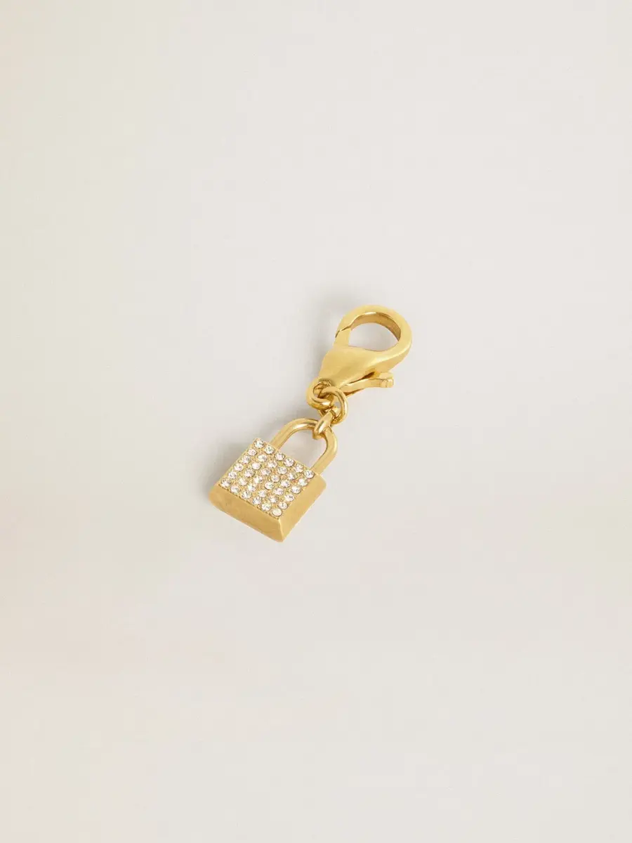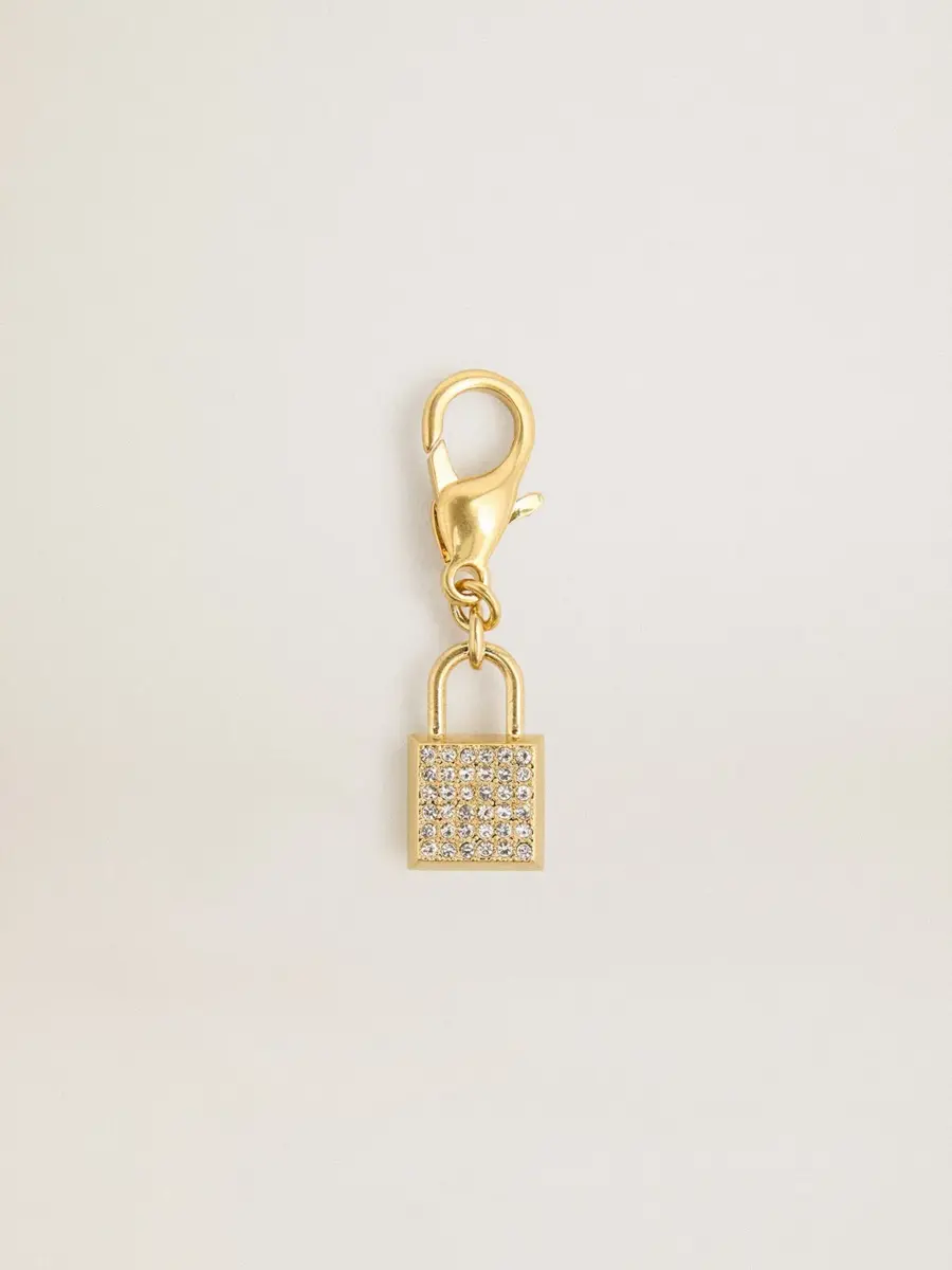 Tu historia se convierte en el accesorio más preciado para llevar contigo y tener siempre a mano. Fabricado en latón dorado, este charm en forma de candado adornado con cristales es el toque dorado que estabas buscando.