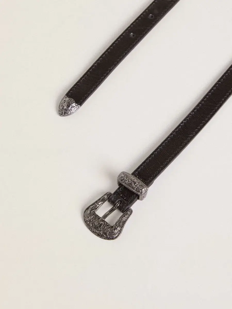El accesorio imprescindible que añade un toque elegante a tu look. La artesanía y la atención al detalle son las características más destacadas de este cinturón de cuero negro con hebilla plateada de estilo cowboy.