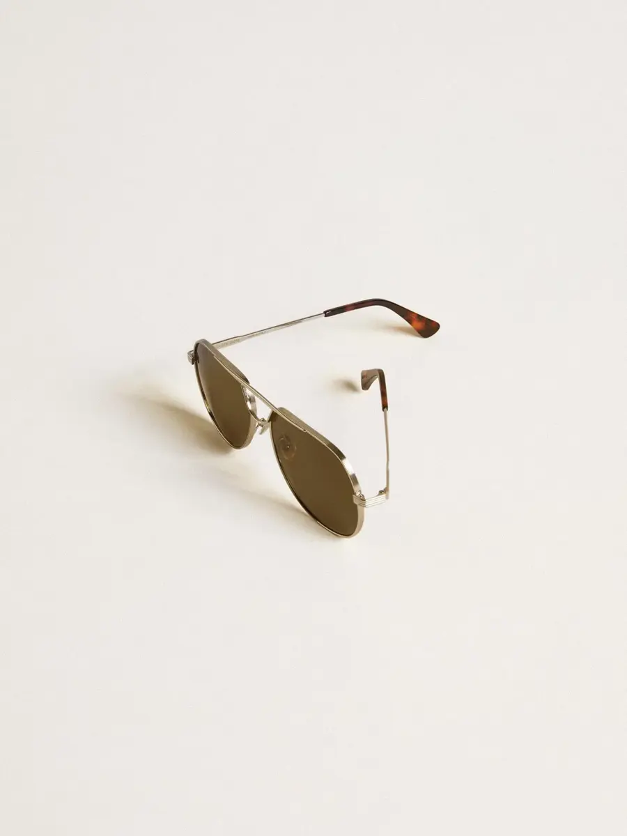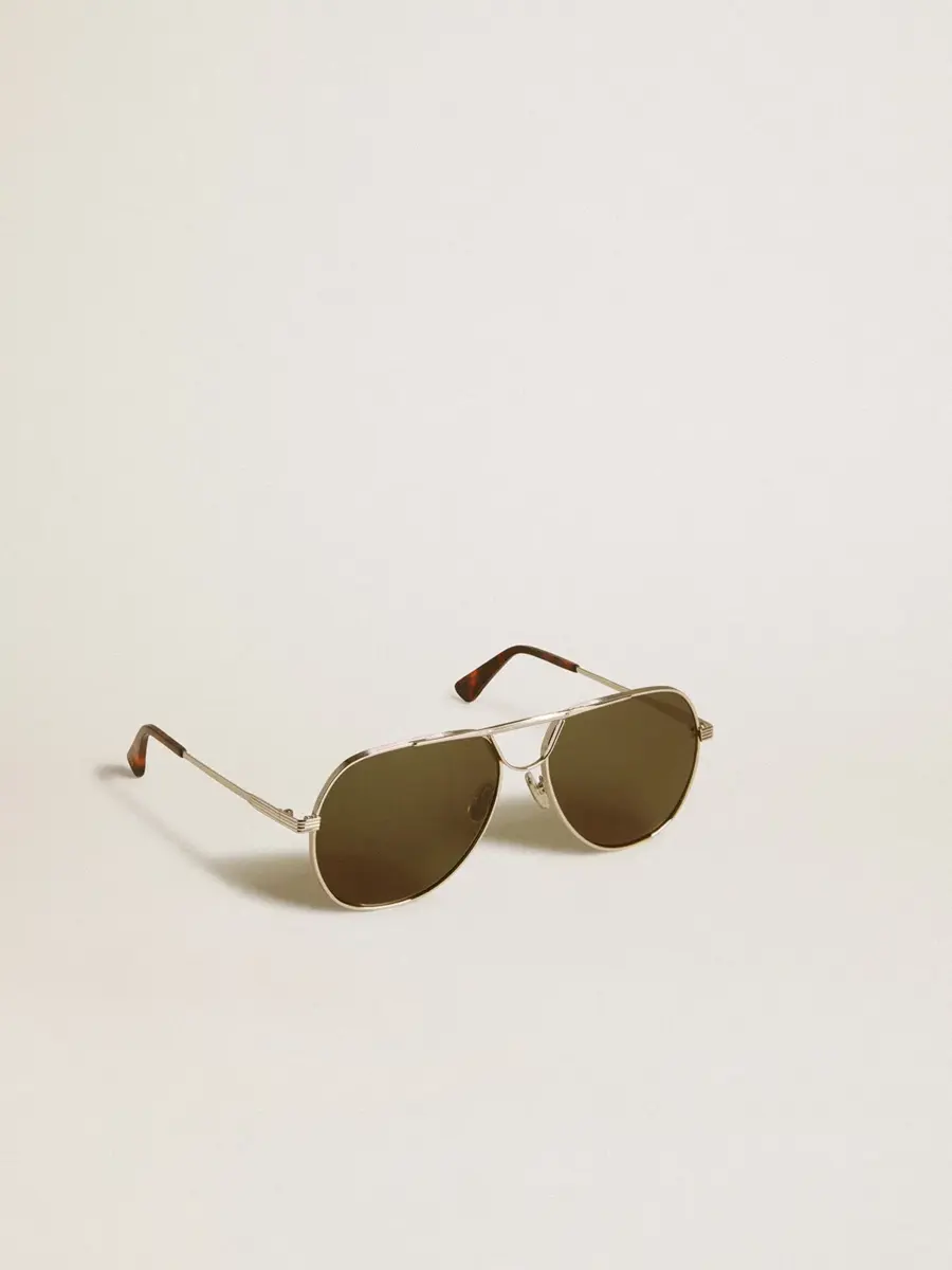 Estas gafas de sol Carter con montura aviador tienen una montura plateada, lentes verdes y terminales de color marrón habana.