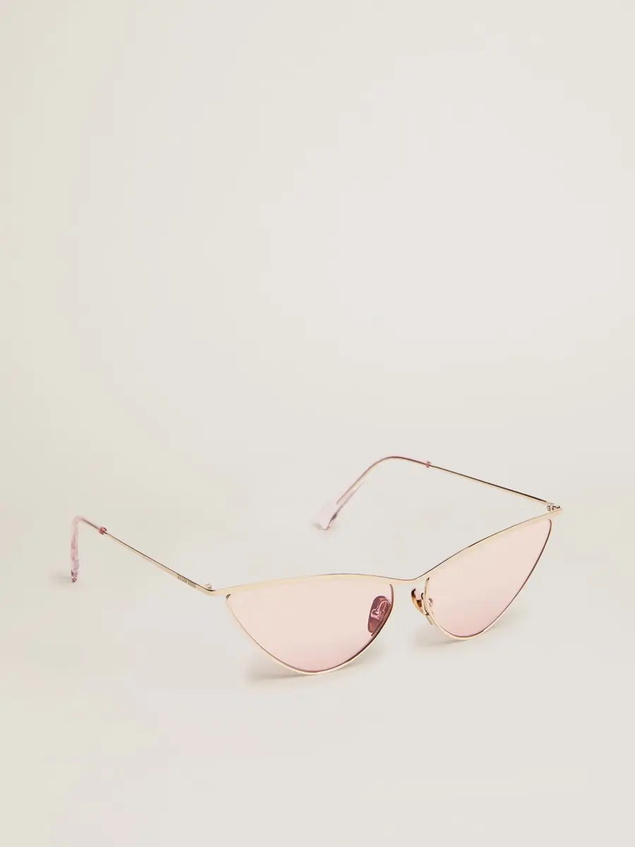 Estas gafas de sol Scarlett con montura de ojo de gato se distinguen por su montura en oro rosa, sus lentes rosas y sus terminales transparentes en rosa. Y, como toque final, las dos icónicas estrellas doradas en la parte delantera.