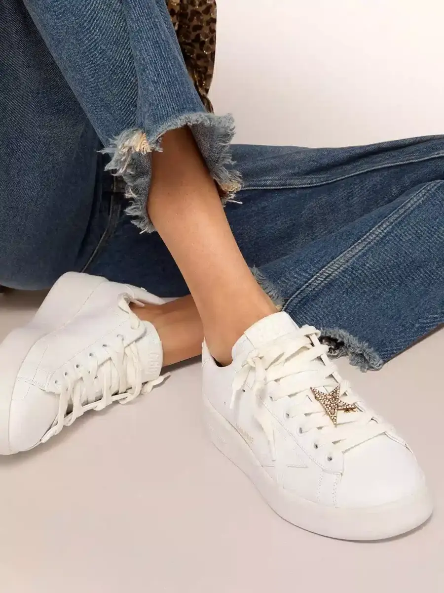 - Cierre de encaje con clip en forma de estrella dorada con cristales decorativos redondos y en forma de baguette