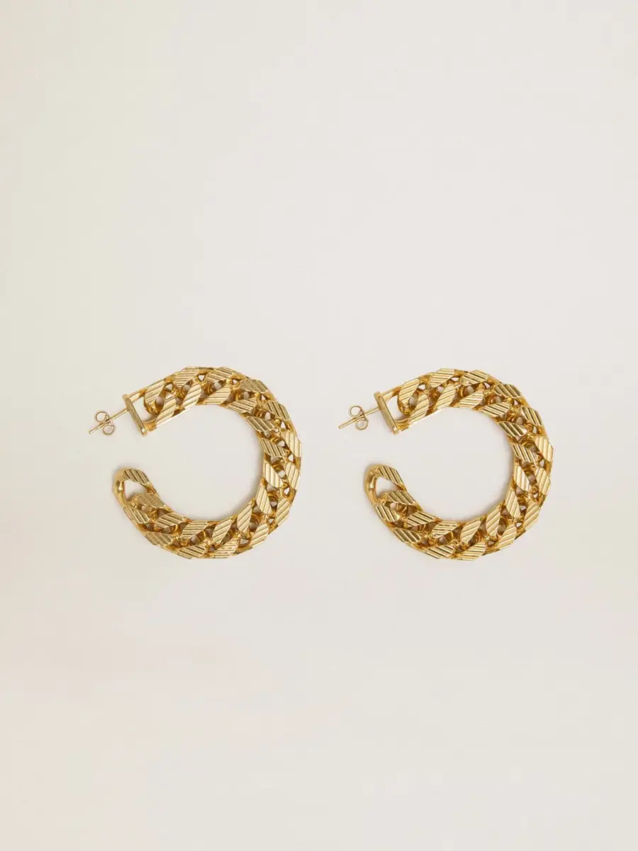 Uniendo el pasado y el presente, abrazando el amor infinito que mantiene vivo un recuerdo: la colección Jewelmates está pensada para acompañarte en tu día a día. Fabricados en latón dorado antiguo, estos pendientes de aro cuentan con una cadena con eslabones trenzados.