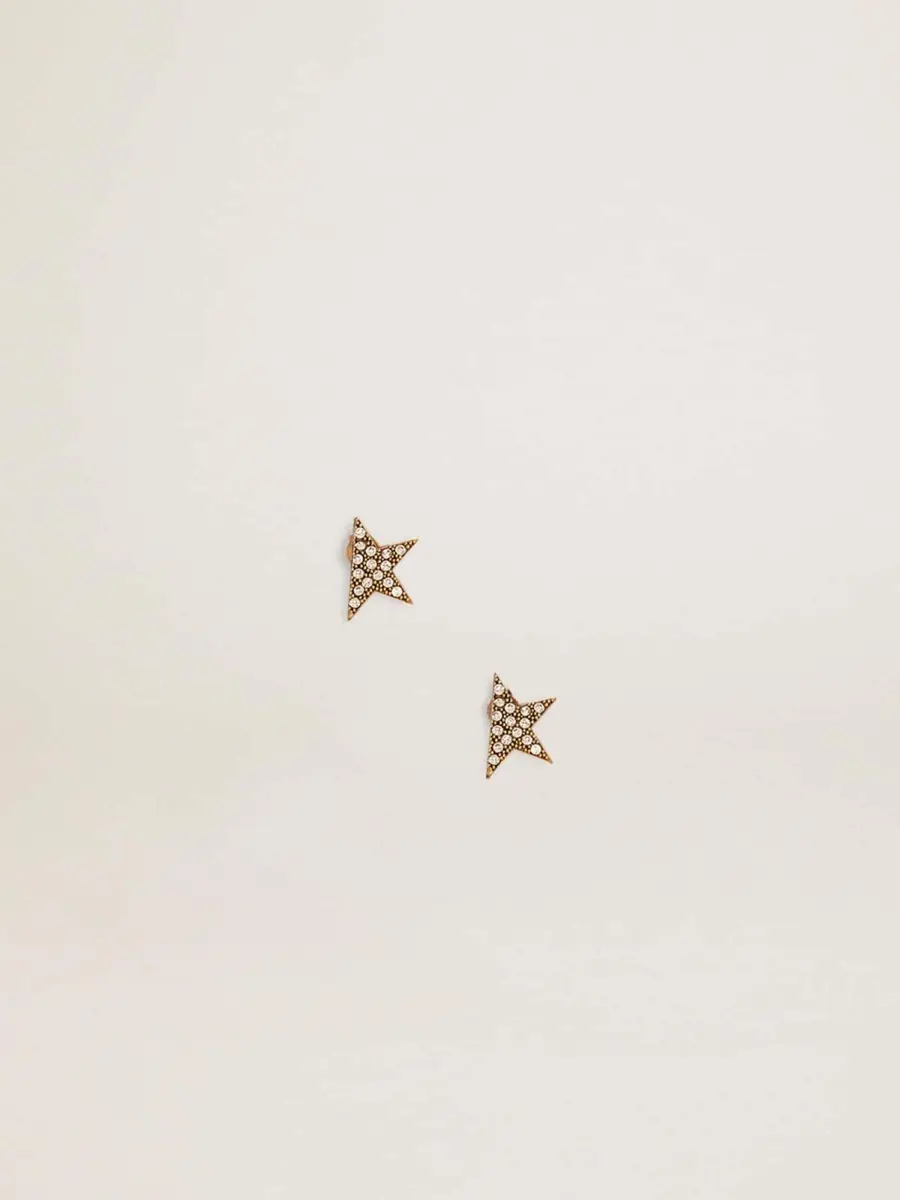 - Pendientes de botón en forma de estrella dorada con cristales redondos decorativos