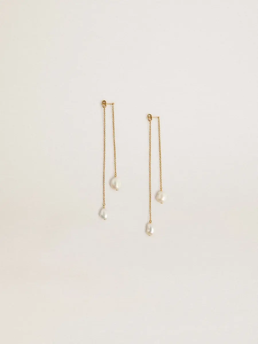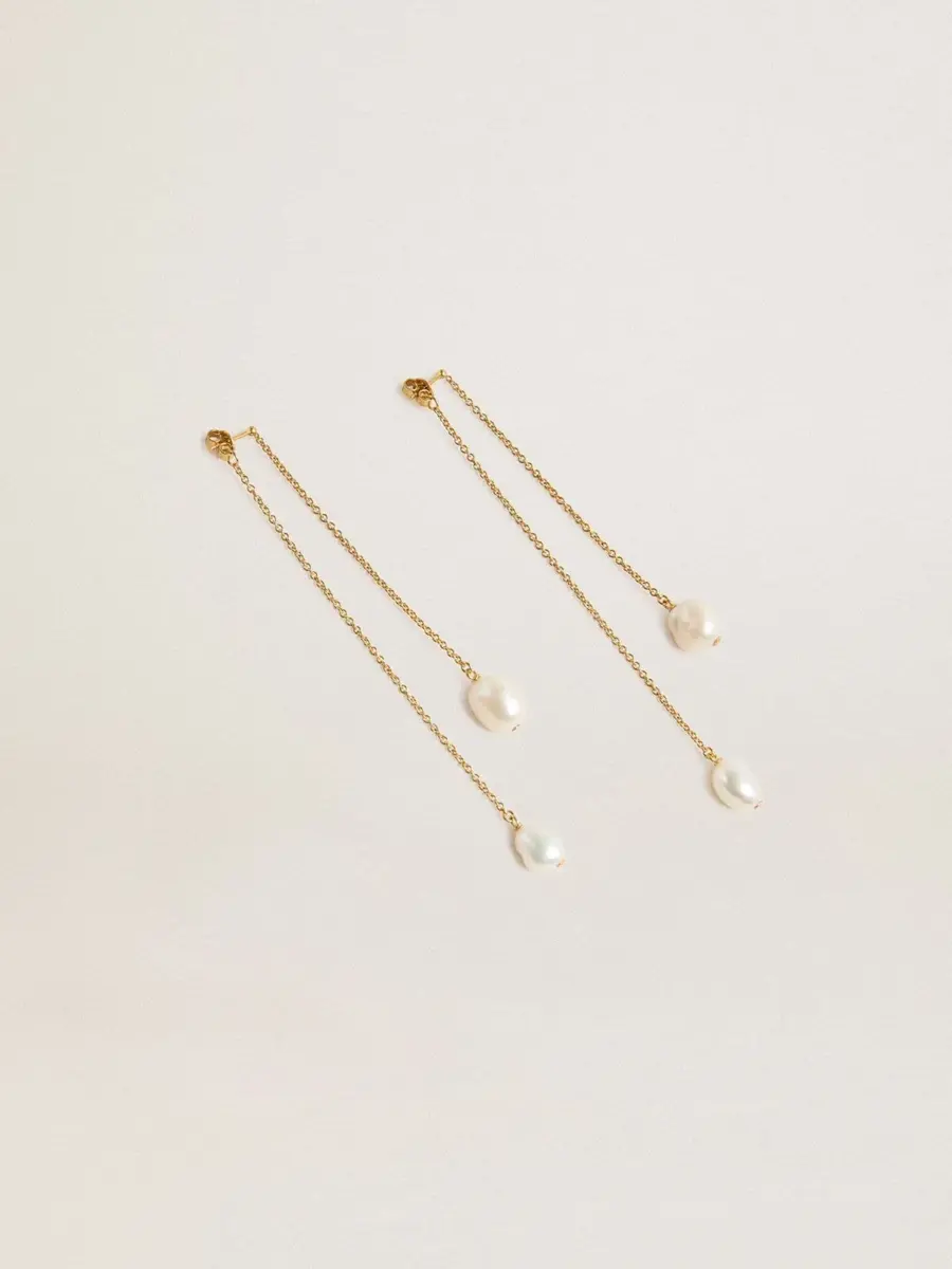 - Pendientes largos con perlas en los extremos