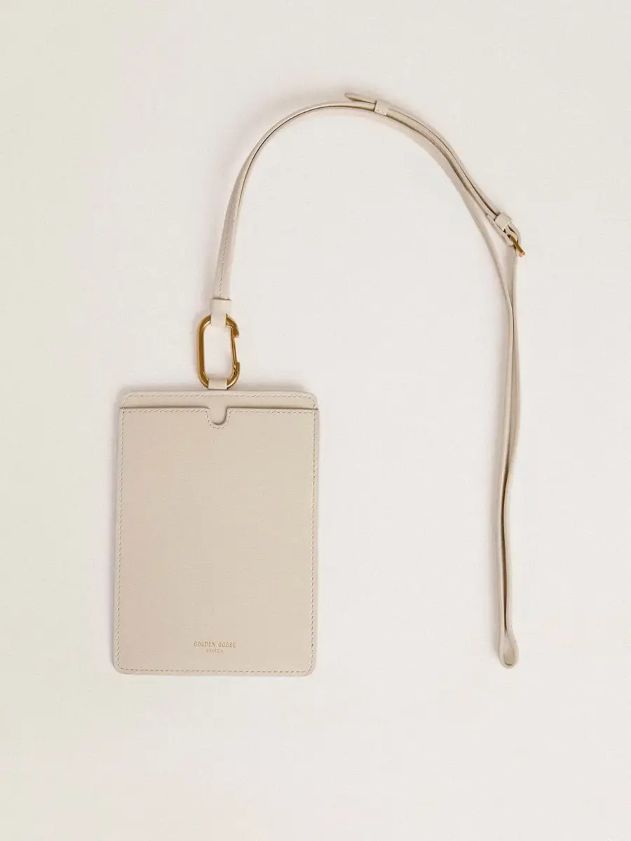 Diseñados para ser únicos y prácticos, estos accesorios de viaje son perfectos para tus aventuras por todo el mundo. En color blanco desgastado, este portadocumentos cuenta con un cordón ajustable y un mosquetón dorado. Las letras Golden Goose en dorado en el centro le dan el toque final.