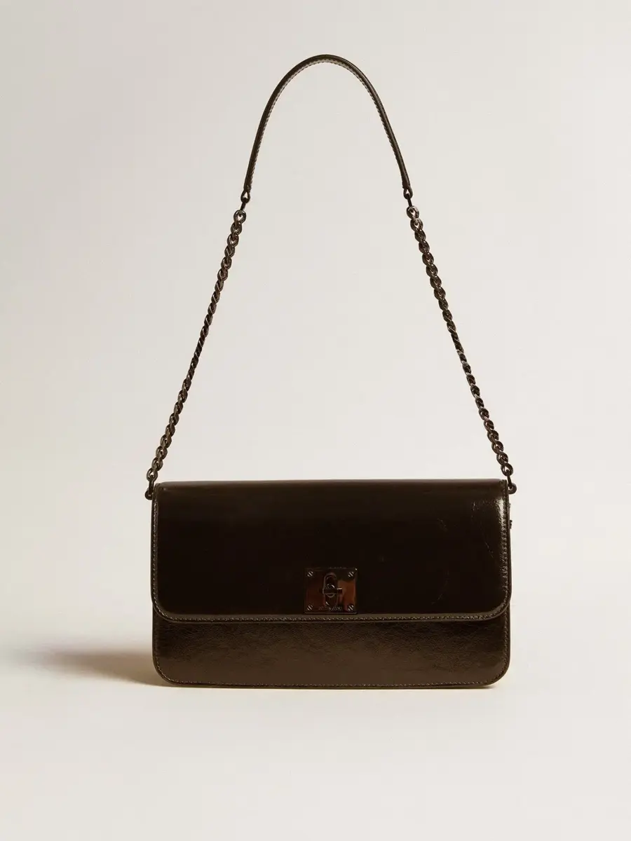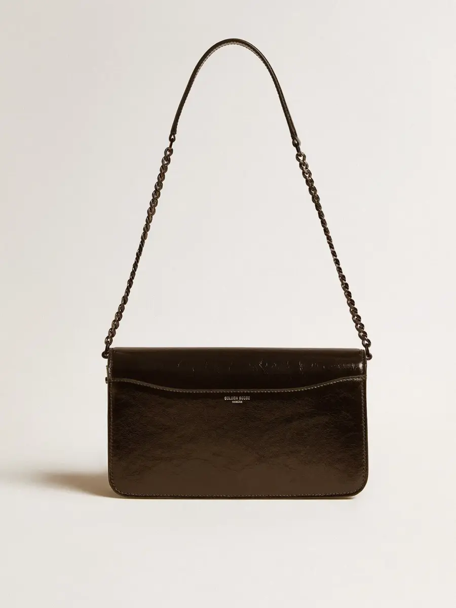 El bolso Gioia, que captura la esencia de viajes fascinantes y momentos familiares inolvidables, es un tapiz de historias que esperan ser descubiertas. Este modelo, en piel negra brillante, cuenta con un cierre de candado con hebilla y cadena metálicas. El bolsillo interior con cremallera para todos tus recuerdos y el bolsillo exterior oculto para guardar tus secretos le dan el toque final.