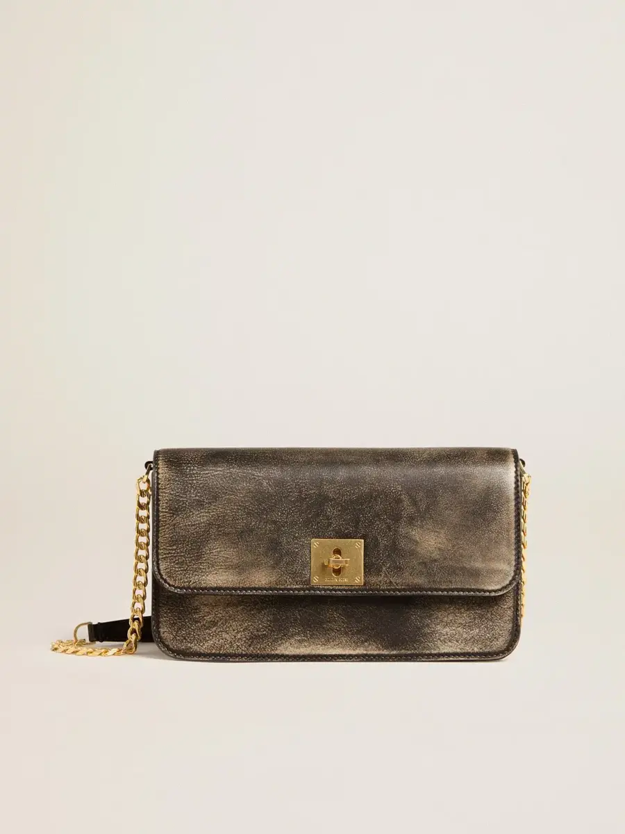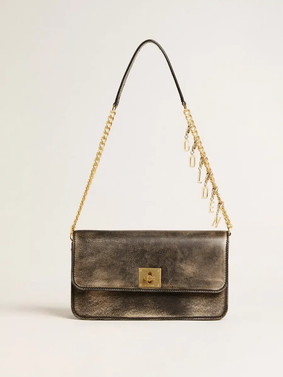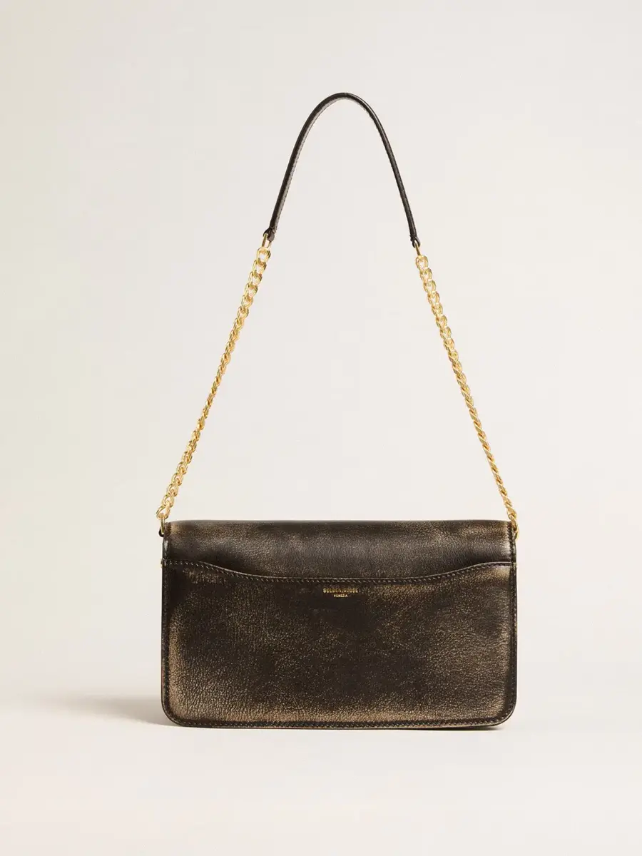 Bolso Gioia en piel vintage negra con detalles dorados