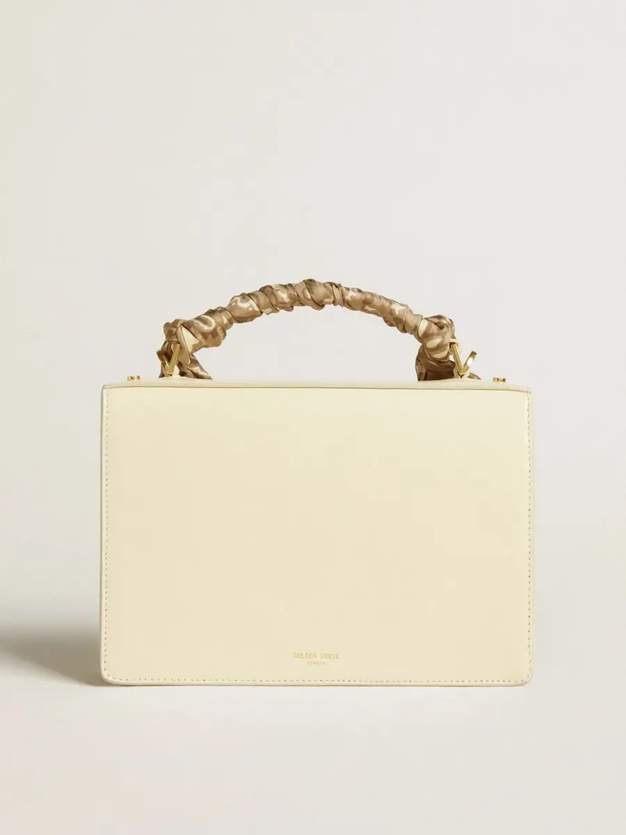Funcional y sofisticado, nuestro bolso Venezia es una declaración de elegancia veneciana que te invita a llevar un pedazo de su alma allá donde vayas. En piel color mantequilla, este modelo cuenta con el toque único de un pañuelo de seda con estampado de cachemira en color gris paloma. El doble bolsillo interior y los herrajes dorados le dan el toque final.