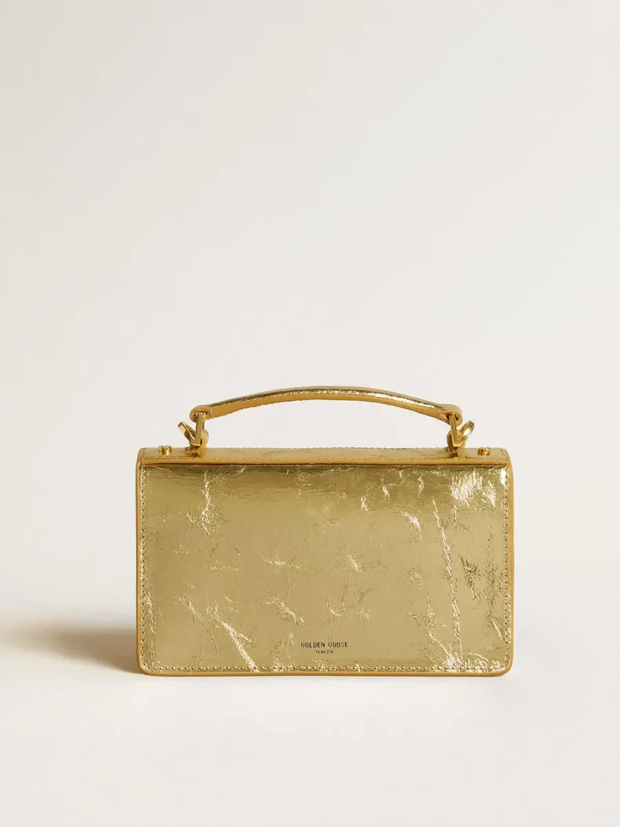 Funcional y sofisticado, nuestro bolso Venezia es una declaración de elegancia veneciana que le invita a llevar consigo un pedazo de su alma allá donde vaya. En piel metalizada dorada, la versión pequeña de este modelo cuenta con un cierre de hebilla dorada y detalles metálicos dorados. El doble bolsillo interior le da el toque final.