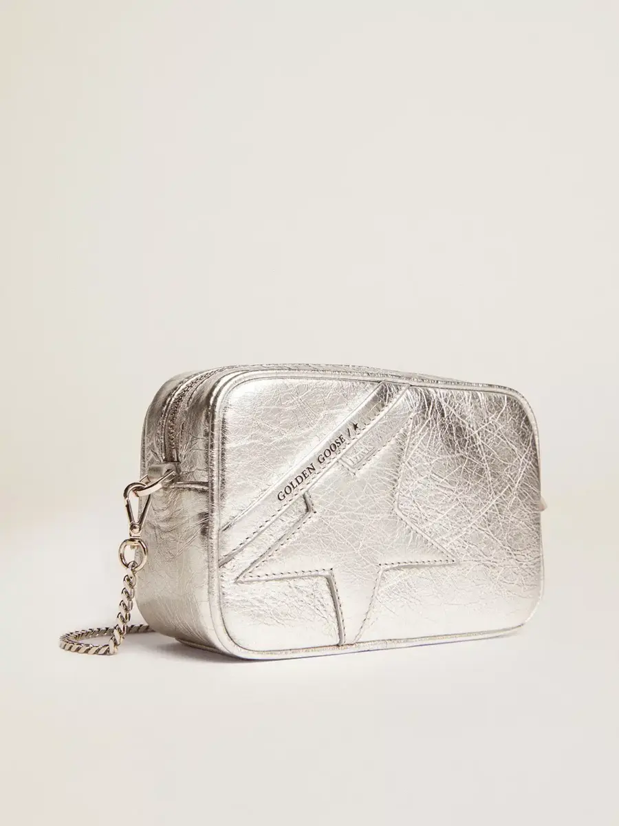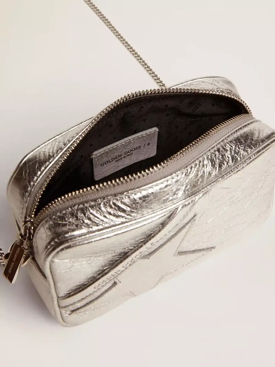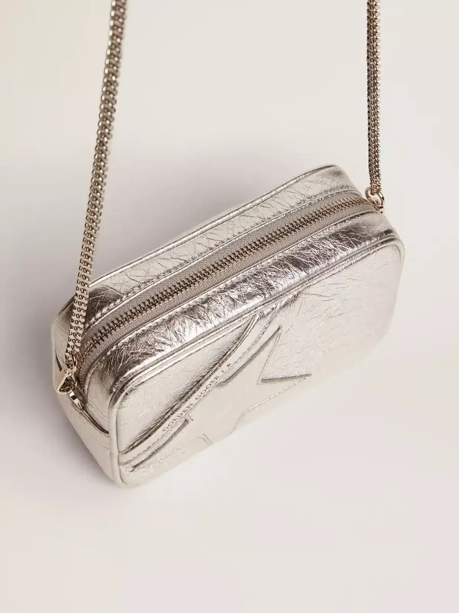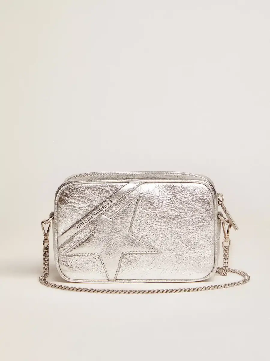 Bolso Mini Star para mujer en piel laminada plateada con estrella tono sobre tono
