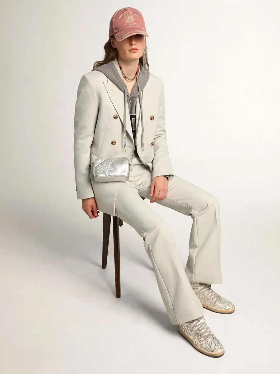 Inspiración vintage, actitud metropolitana. Un accesorio versátil que captura el diseño clásico de los bolsos tipo cámara y destaca por sus detalles refinados, ahora también en versión mini. Este modelo, en piel laminada plateada con efecto arrugado, presenta una estrella tono sobre tono. La cadena plateada para el hombro y el logotipo negro en contraste que decora la parte delantera completan el look.