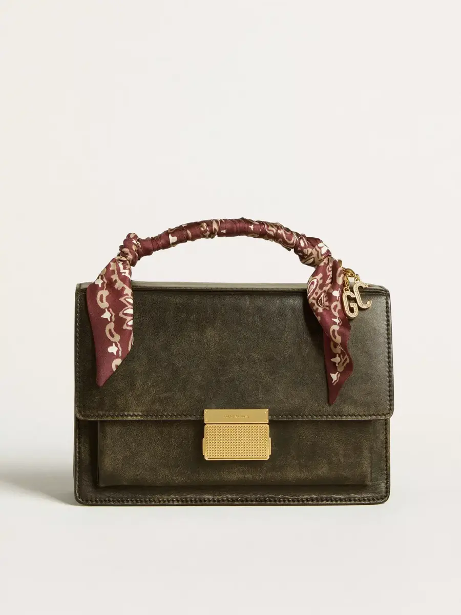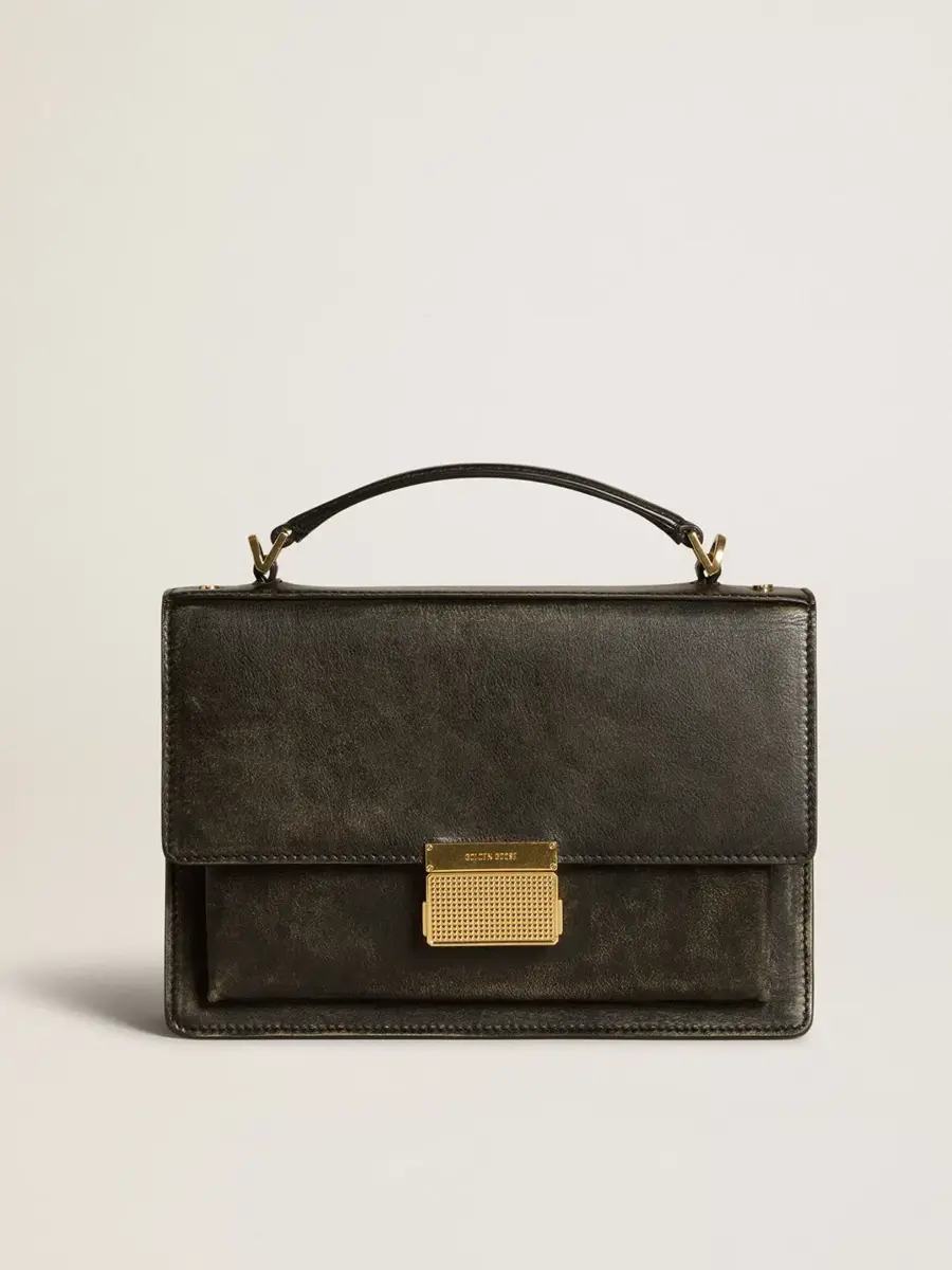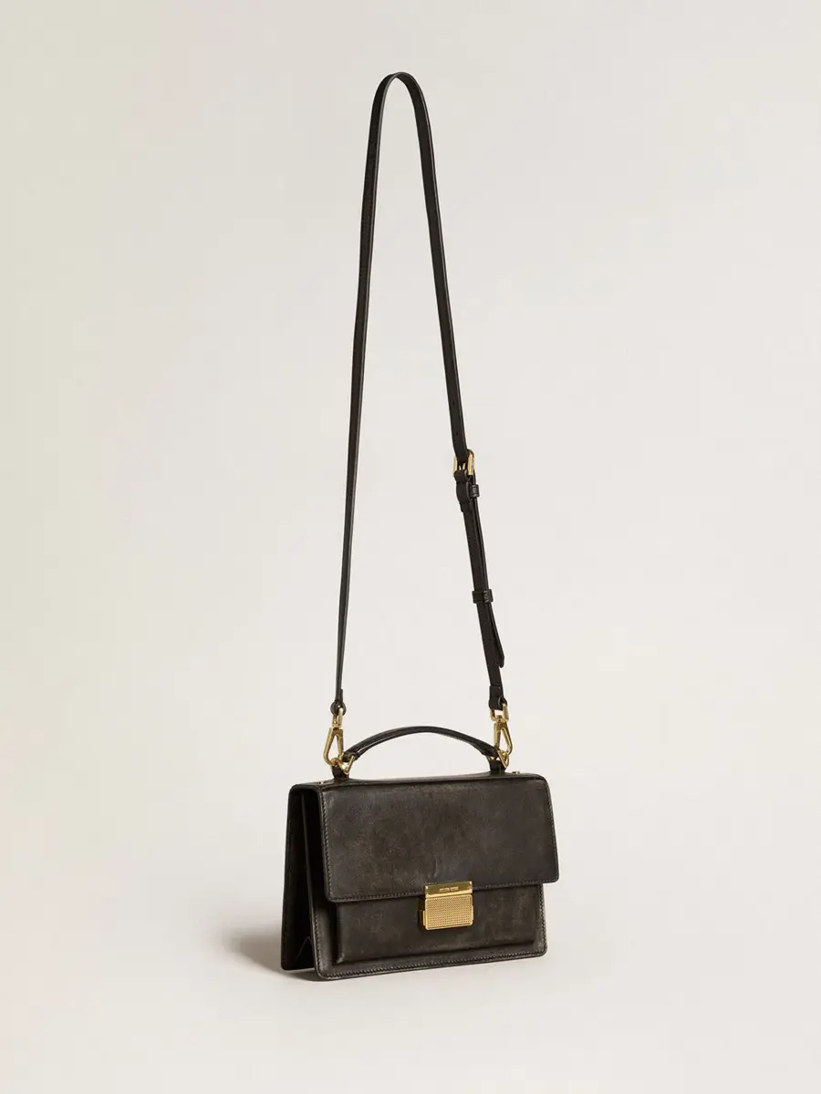 Funcional y sofisticado, nuestro bolso Venezia es una declaración de elegancia veneciana que te invita a llevar un pedazo de su alma allá donde vayas. En piel envejecida negra, este modelo cuenta con un cierre de hebilla dorada y detalles metálicos dorados. El doble bolsillo interior le da el toque final.