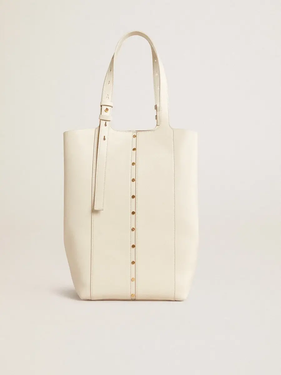 Diseñado para satisfacer las exigencias de la vida metropolitana, el bolso 24/7 rinde homenaje al ritmo de la ciudad. Ofrece dos bolsos en uno, lo que te permite moverte con facilidad durante tus días y noches más ajetreados. Esta versión clásica del modelo North South en piel color capuchino cuenta con asas dobles ajustables y cierres laterales, lo que te permite cambiar el ancho del bolso. Los tachones dorados que resaltan la elegancia del bolso añaden el toque final.