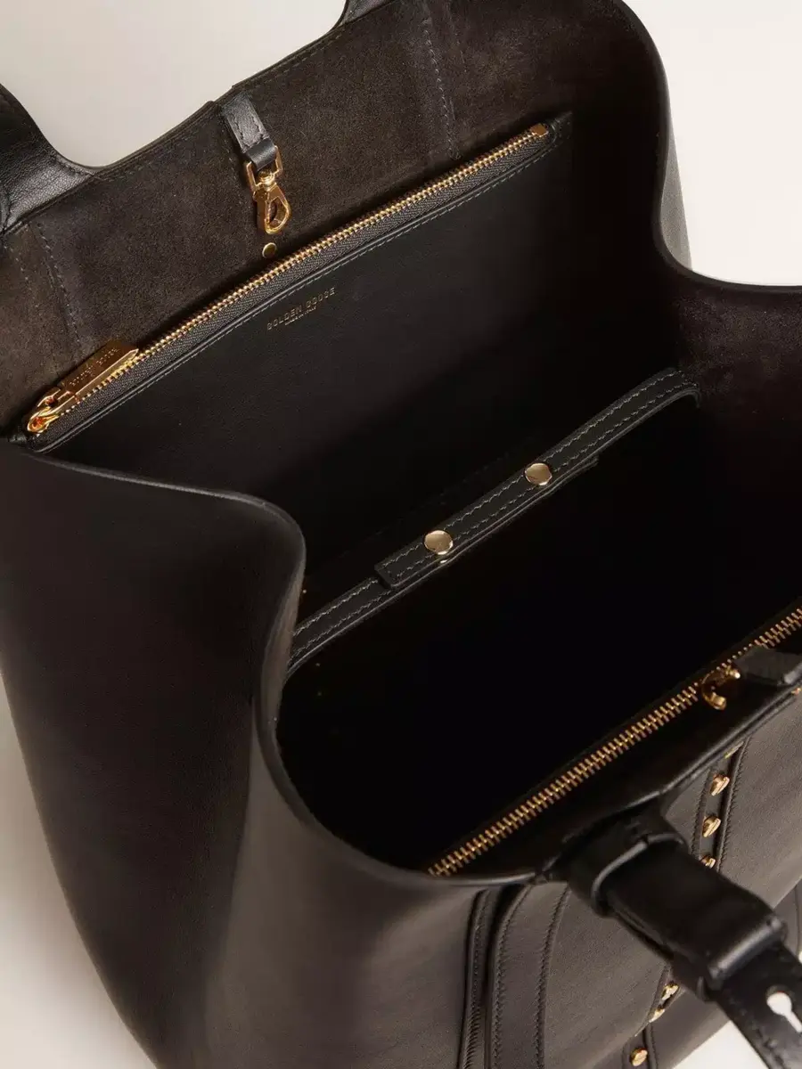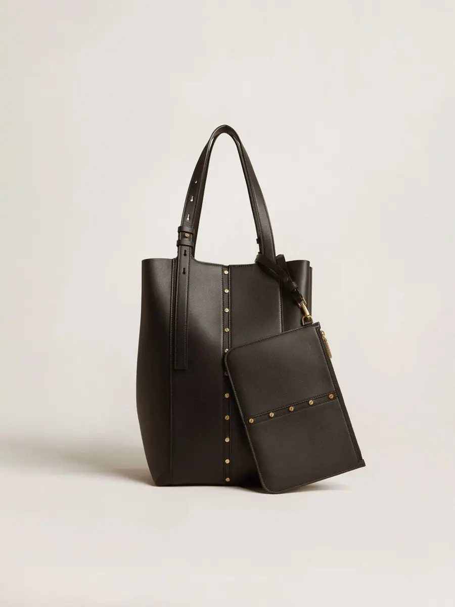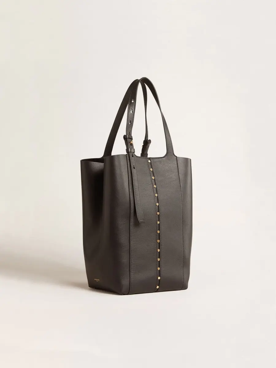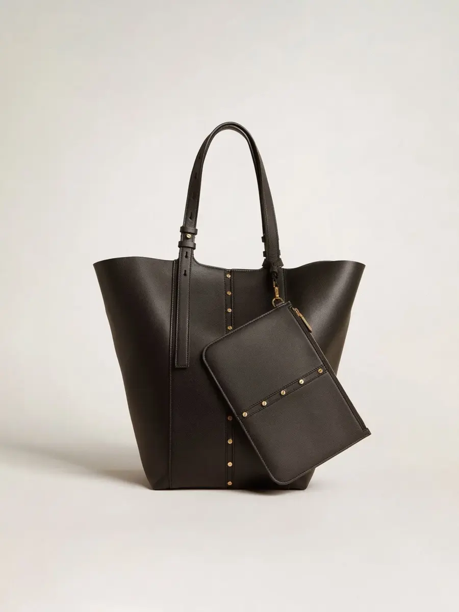 Diseñado para satisfacer las exigencias de la vida metropolitana, el bolso 24/7 rinde homenaje al ritmo de la ciudad. Ofrece dos bolsos en uno, lo que te permite moverte con facilidad durante tus días y noches más ajetreados. Esta versión clásica del modelo North South en piel negra cuenta con asas dobles ajustables y cierres laterales, lo que te permite cambiar el ancho del bolso. Los tachones dorados que resaltan la elegancia del bolso de compras añaden el toque final.