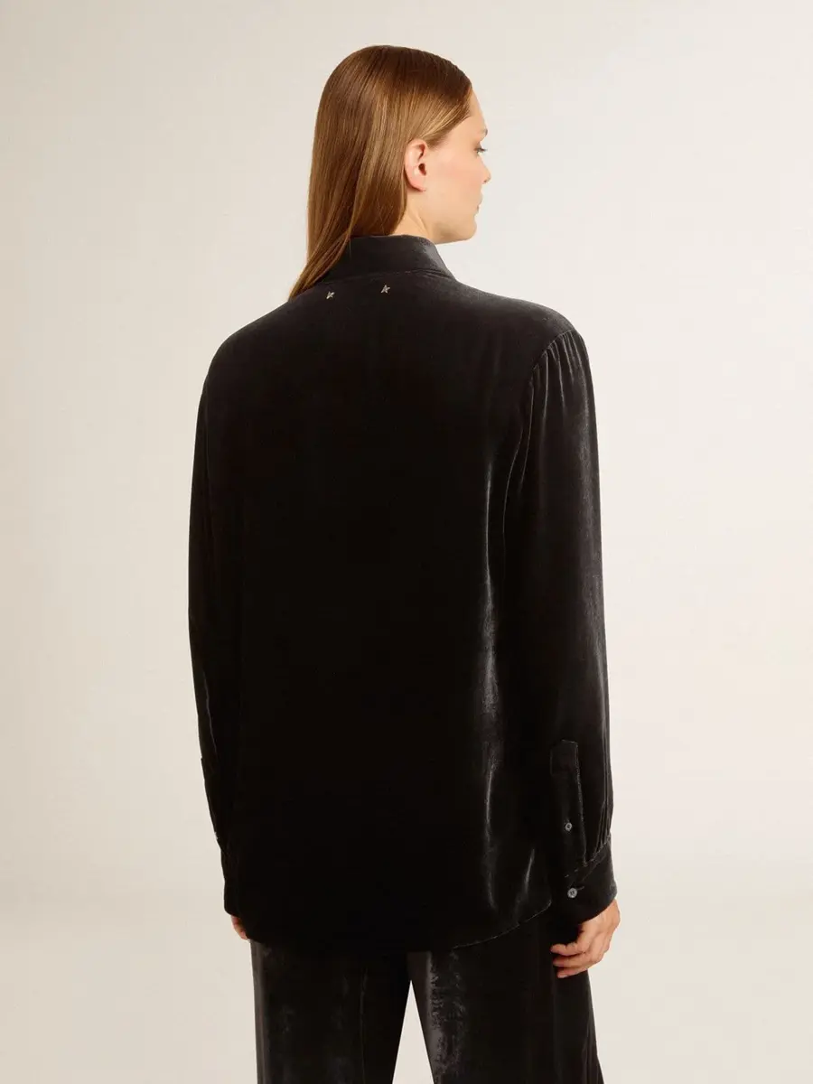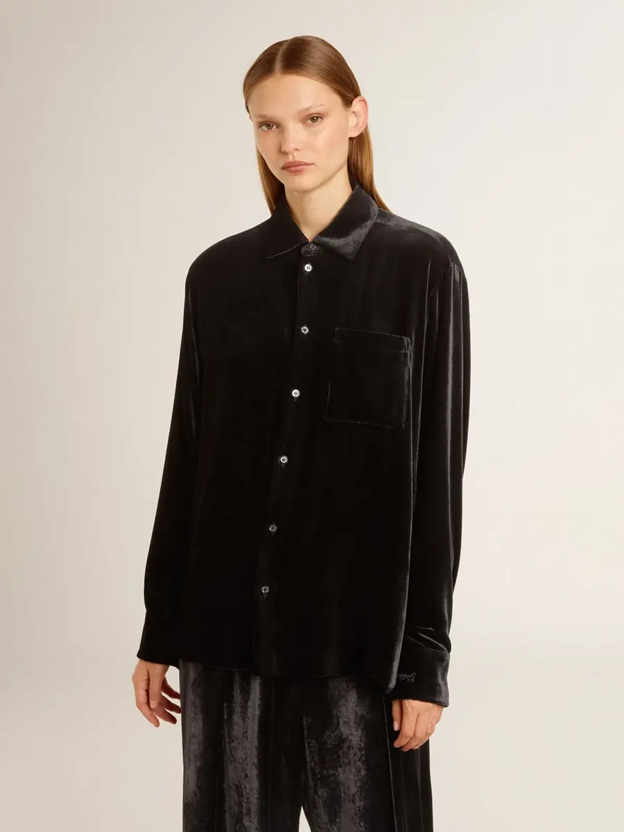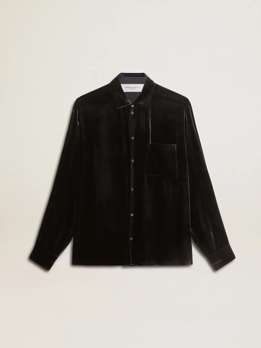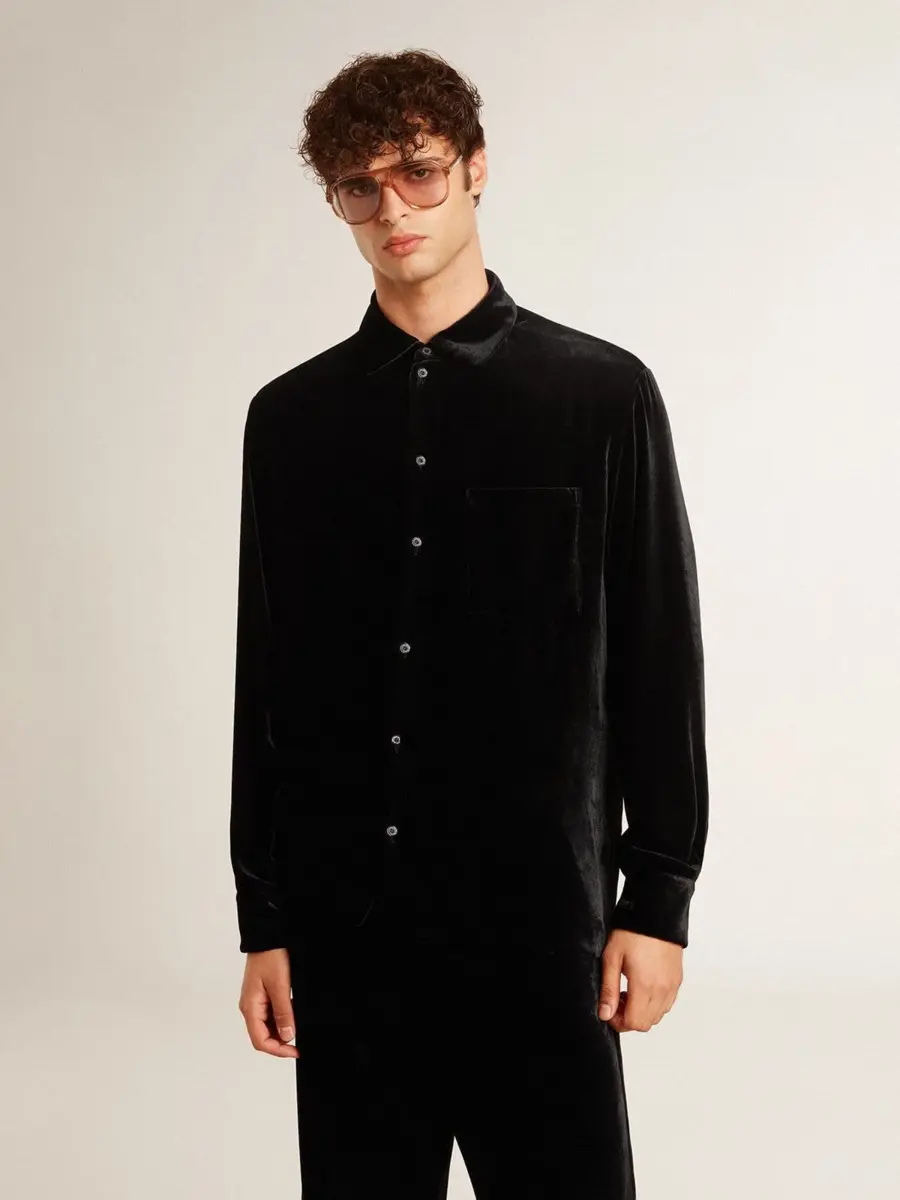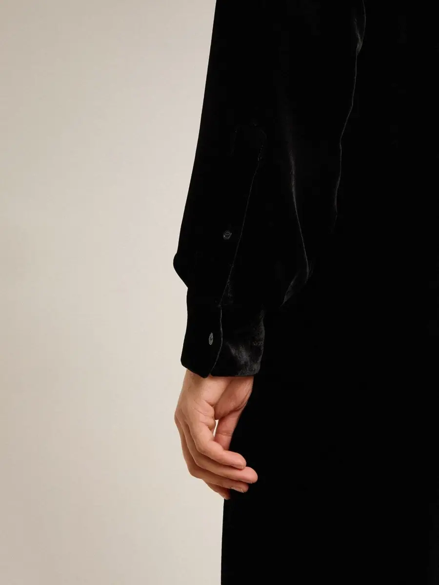 Inspirada en la energía eléctrica de los años noventa, la colección celebra el poder ilimitado de los sueños compartidos. Movidos por la pasión, cada diseño captura el significado de la unión y el poder de la música. Confeccionada en mezcla de seda negra, esta camisa presenta un corte recto y un efecto aterciopelado. El bolsillo delantero y el bordado con el logotipo en el puño le dan el toque final.