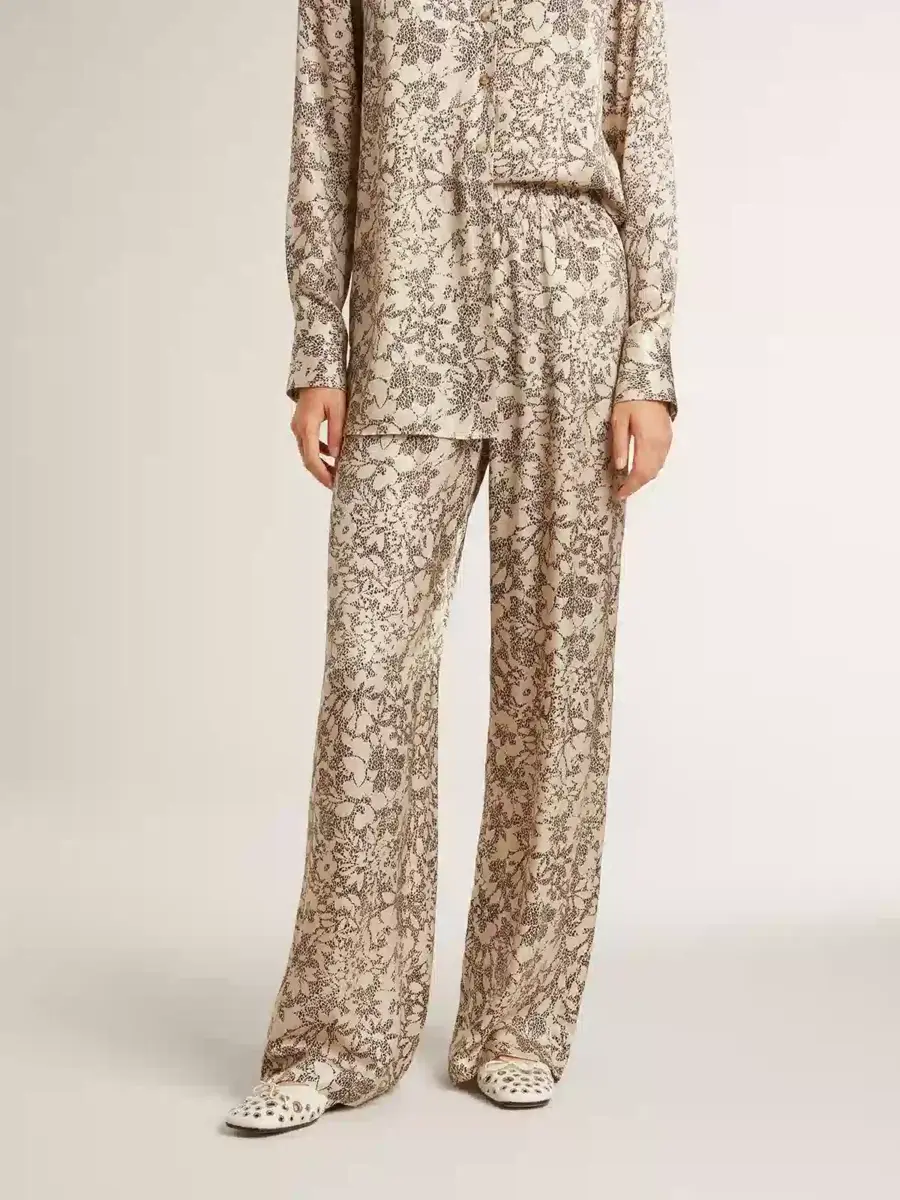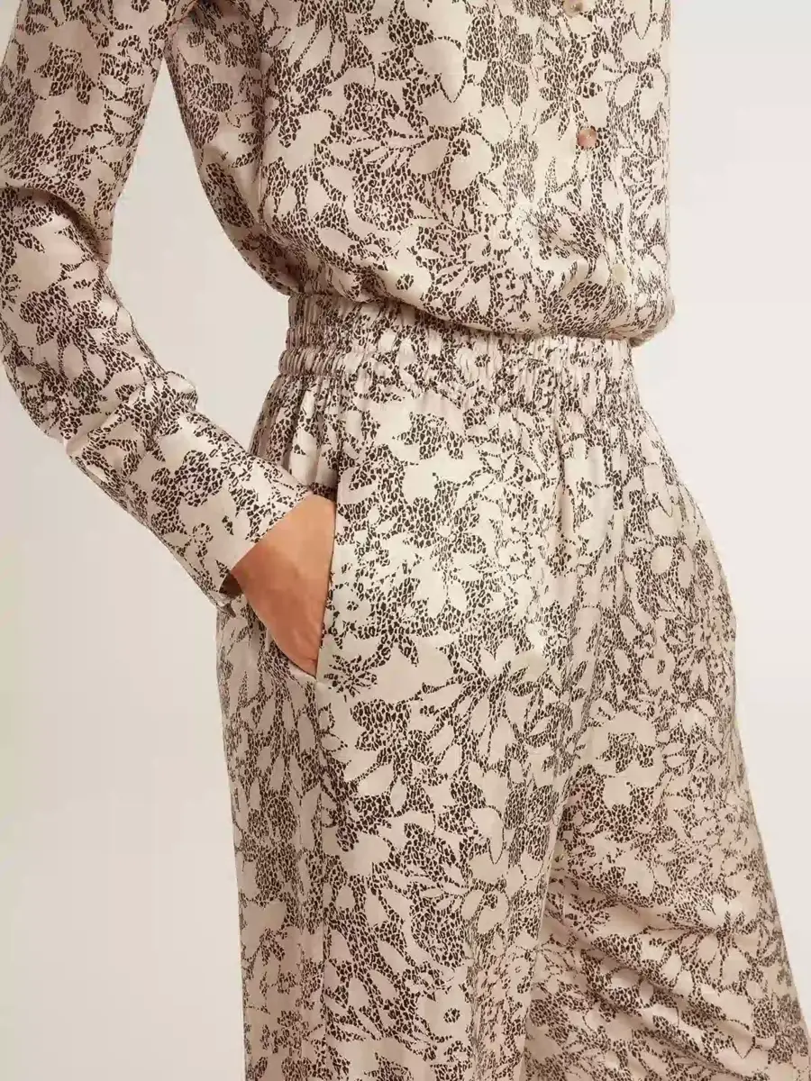 Una colección inspirada en la armonía de la naturaleza, donde cada detalle fluye con naturalidad. Estos pantalones de chándal, confeccionados en una mezcla de seda, presentan un estampado floral. La cintura elástica les da el toque final.