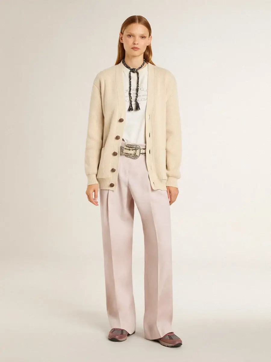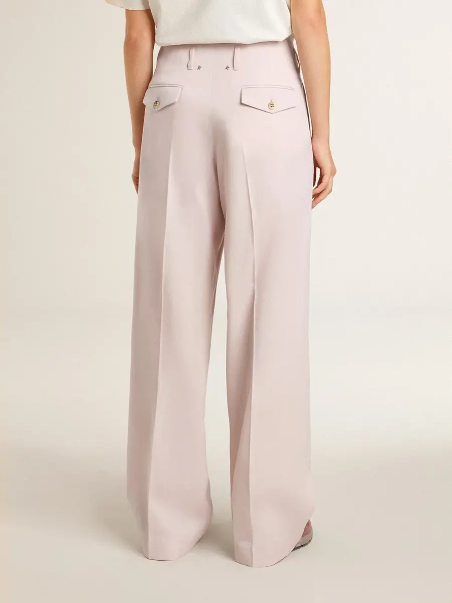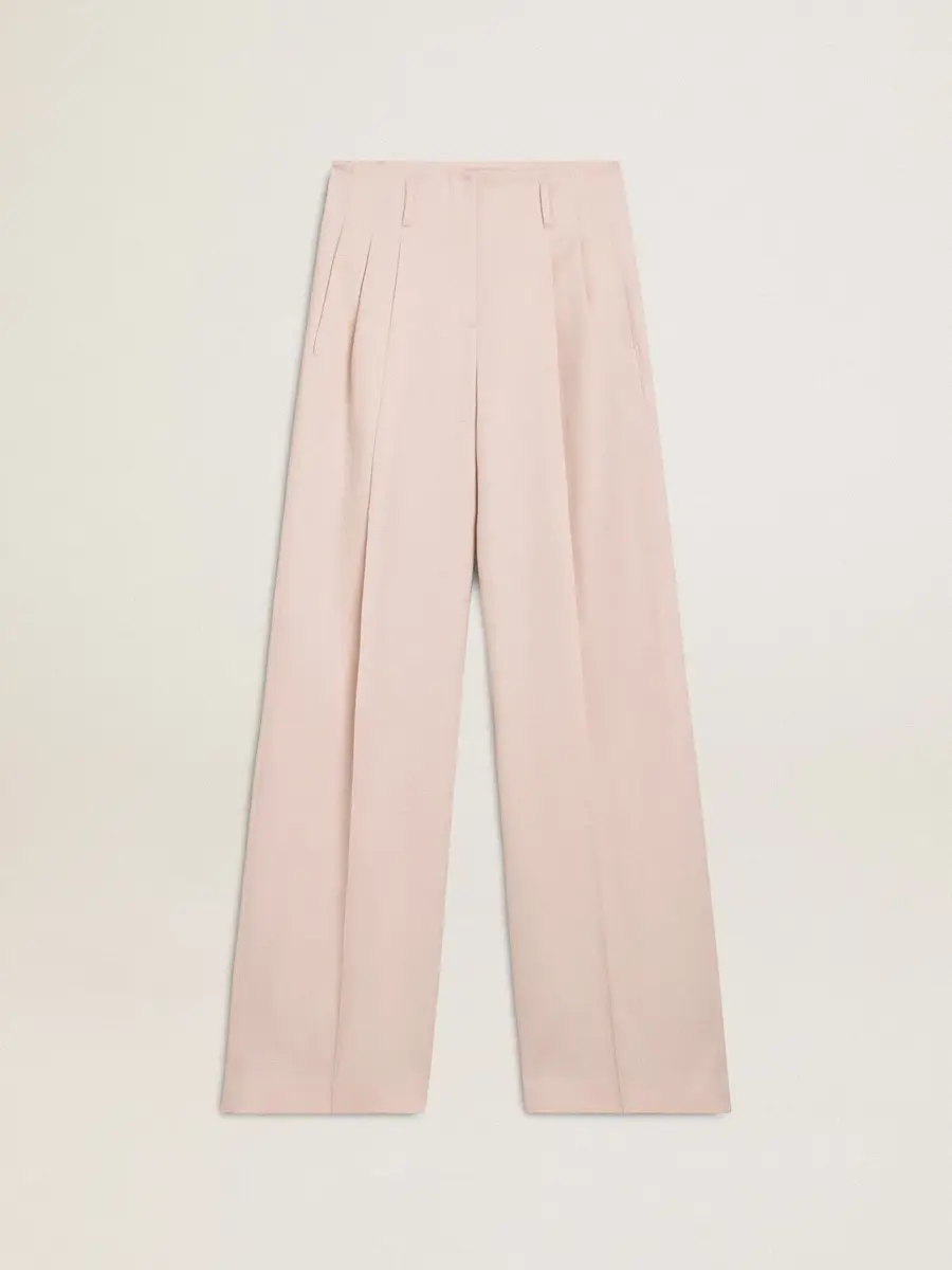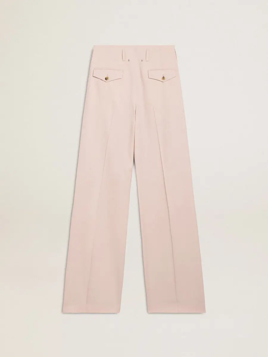 Una colección inspirada en la armonía de la naturaleza, donde cada detalle fluye con naturalidad. Estos pantalones de lana rosa para mujer presentan cintura alta y rayas delanteras de estilo sartorial.