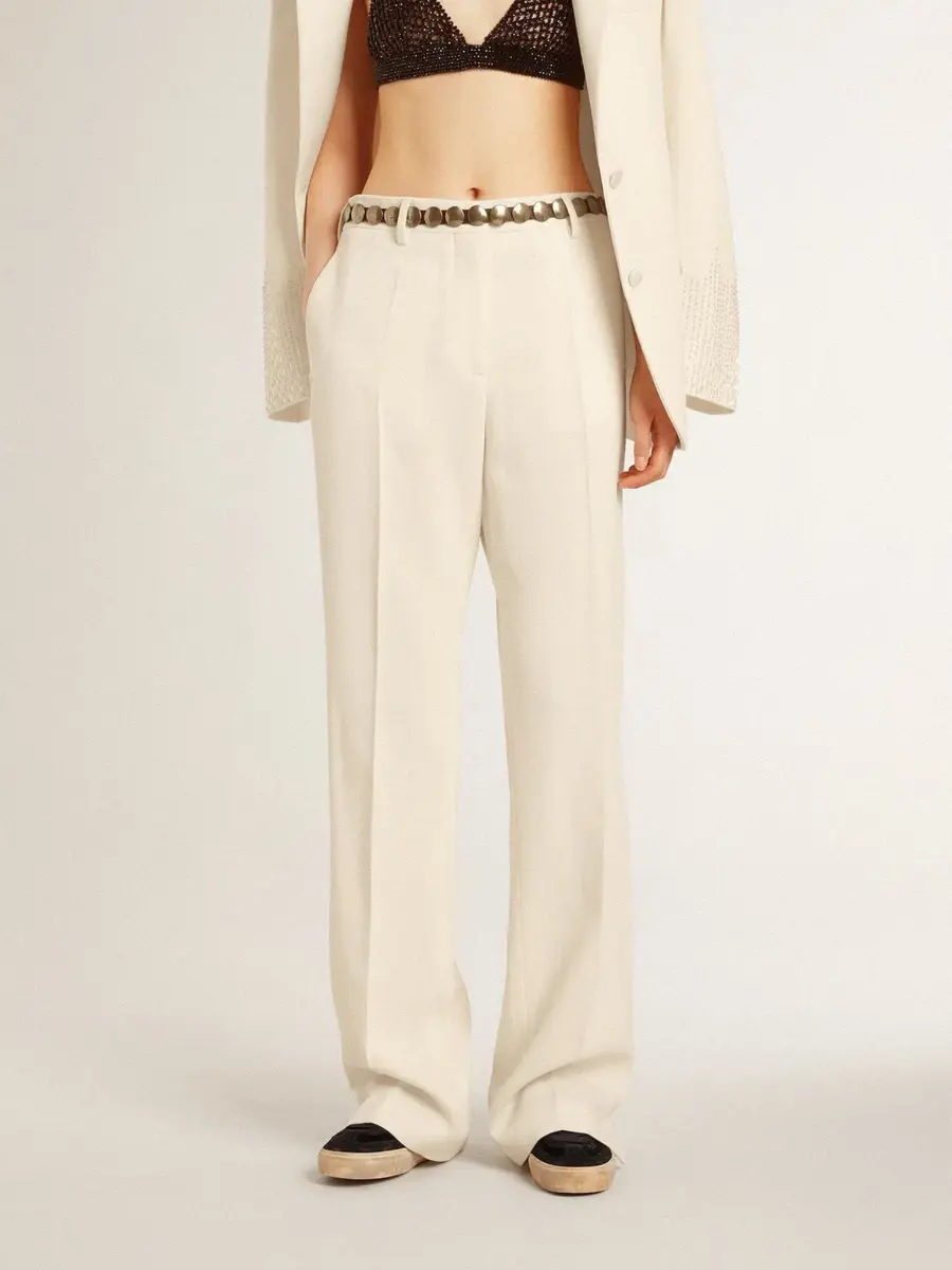 Pantalones holgados de mujer en tejido sastre blanco desgastado