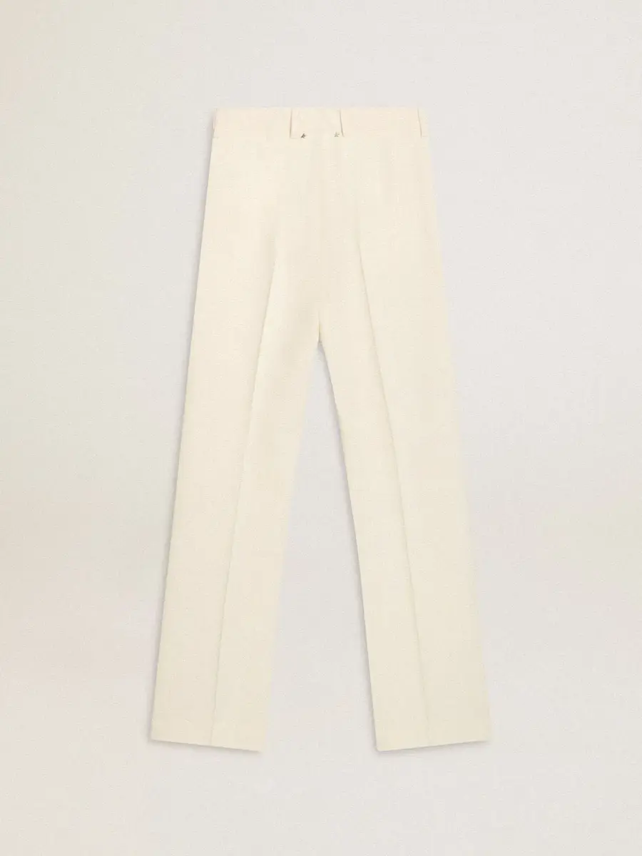 Sé el primero en valorar “Pantalones holgados de mujer en tejido sastre blanco desgastado”