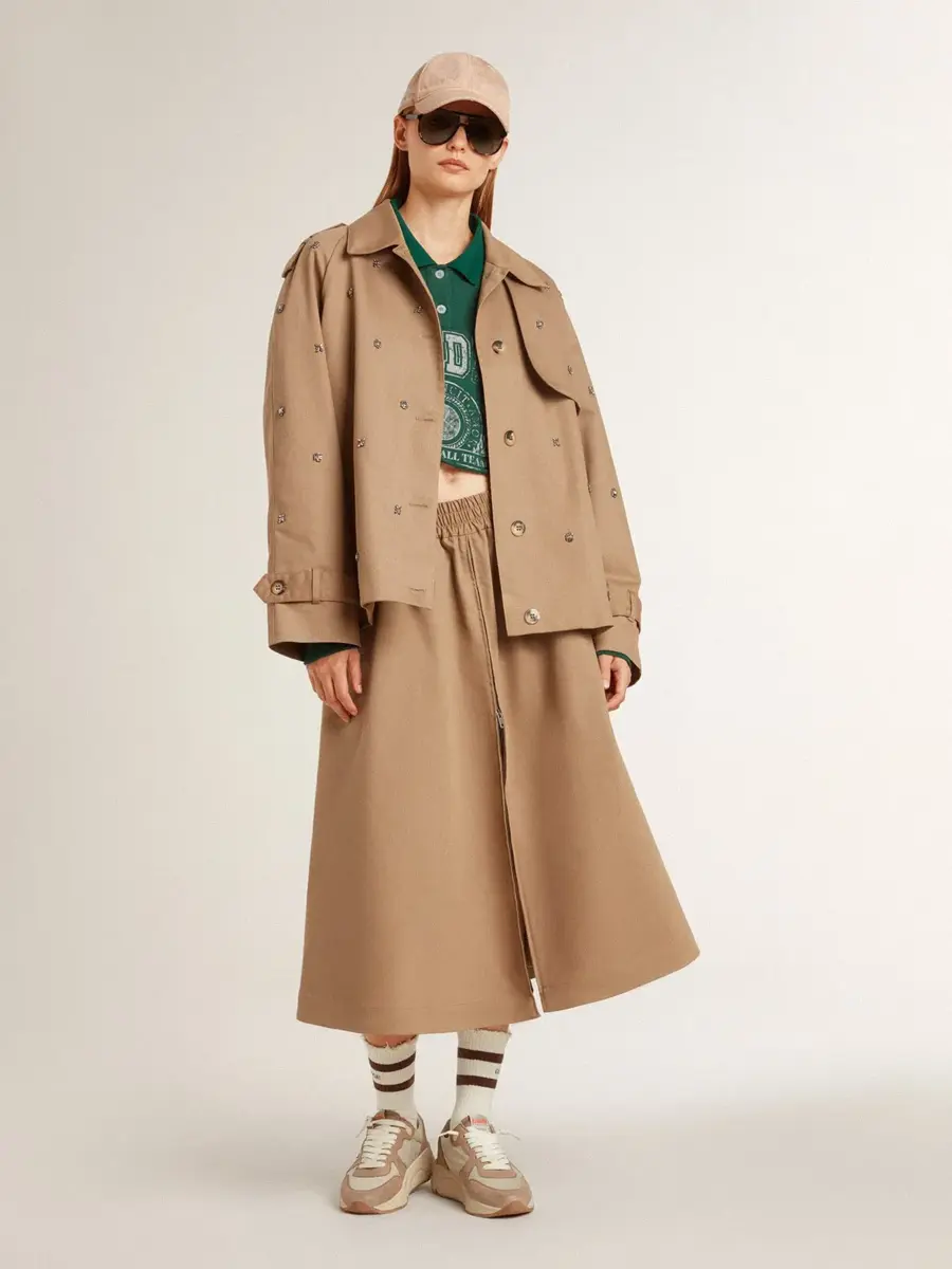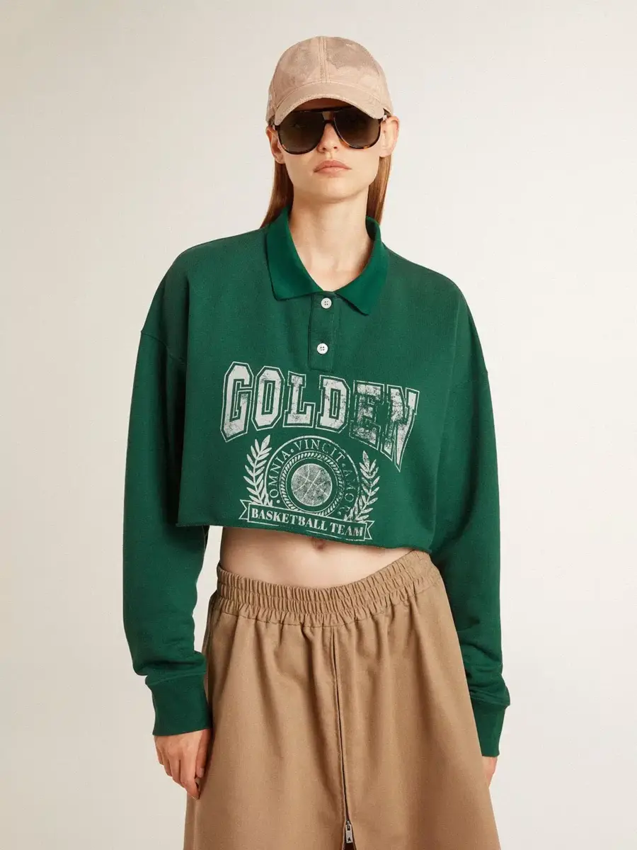 Una colección inspirada en la armonía de la naturaleza, donde cada detalle fluye con naturalidad. Esta sudadera polo corta de algodón verde presenta un logotipo «Golden» blanco y letras estampadas, así como bordes acanalados.