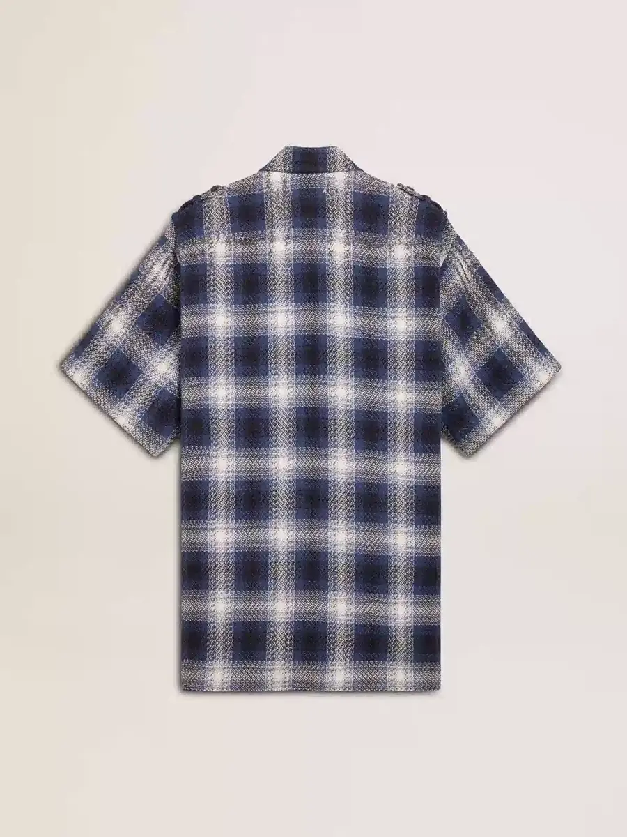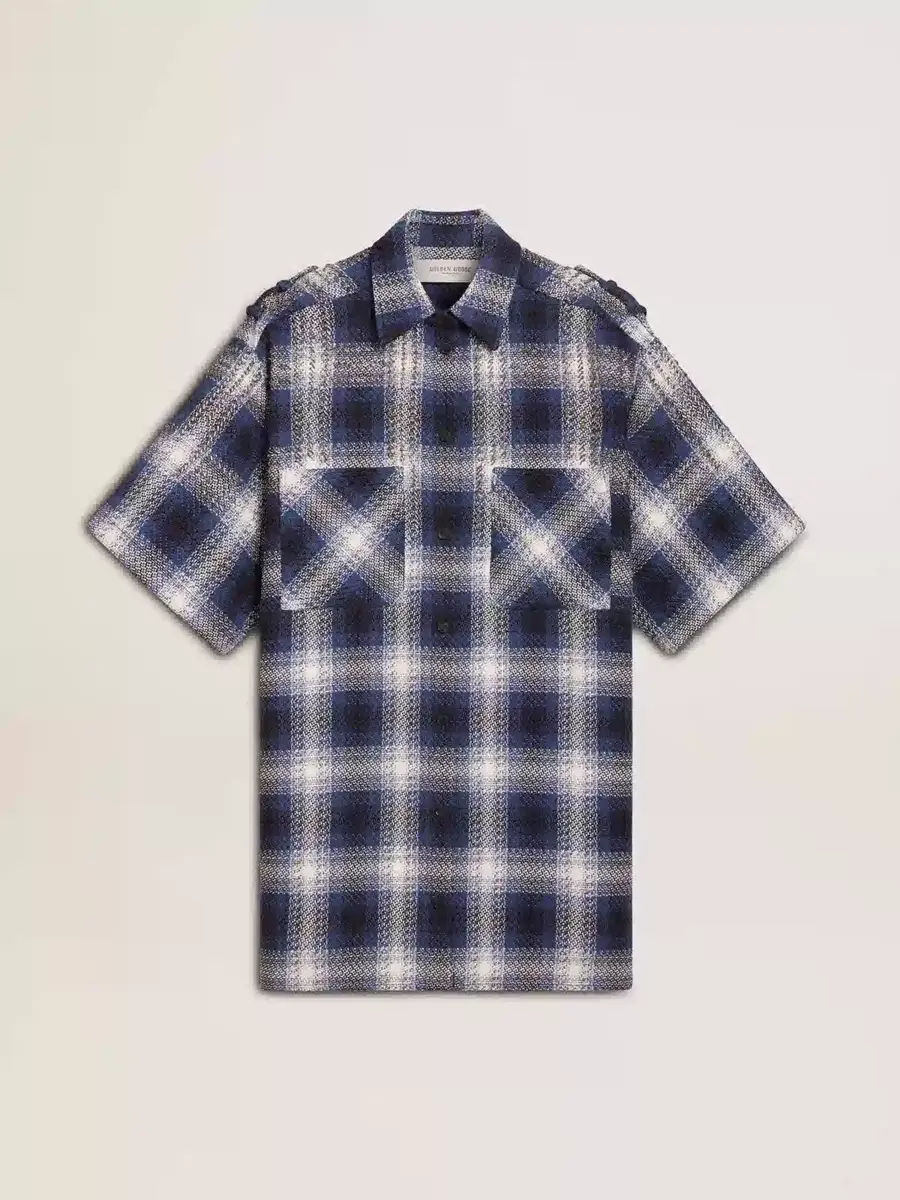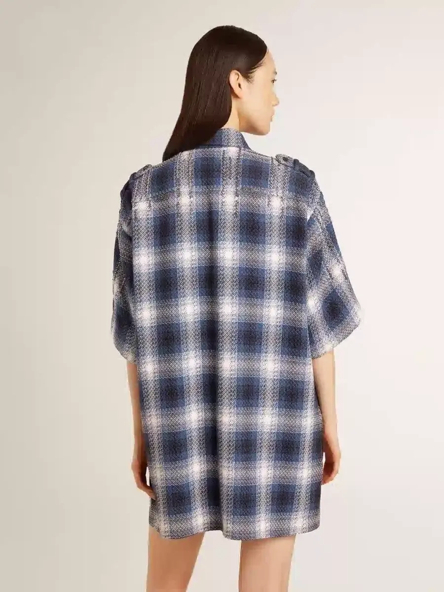 Una colección inspirada en la armonía de la naturaleza, donde cada detalle fluye con naturalidad. Confeccionado en algodón azul, este vestido camisero corto de corte oversize presenta un estampado de cuadros 3D en blanco y negro y bordados degradados hechos a mano. Los dos bolsillos delanteros y el cierre con botones de cuerno con el logotipo añaden el toque final.
