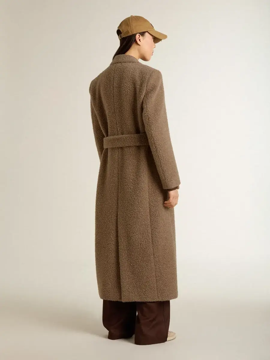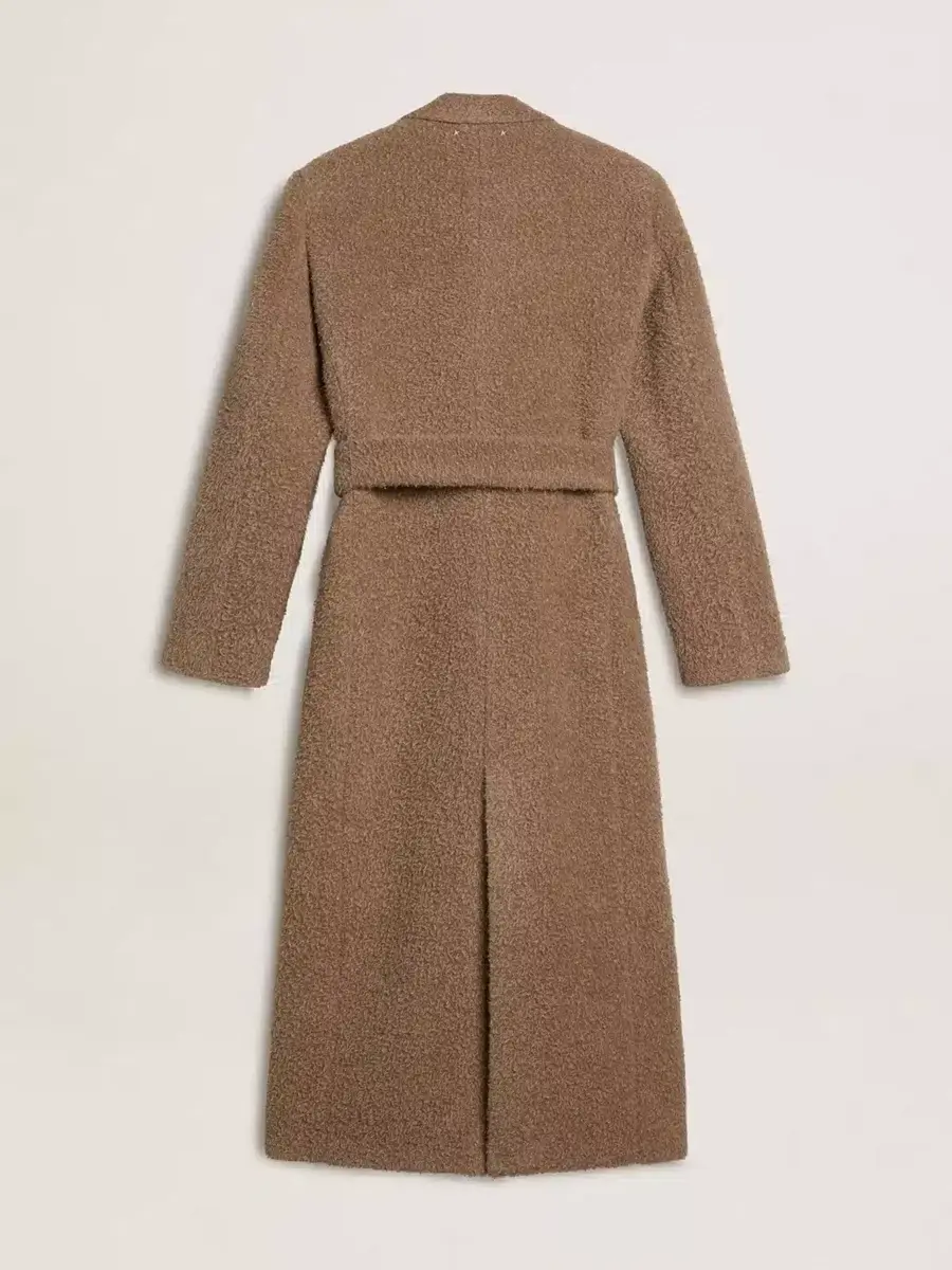 La segunda entrega de la colección Otoño/Invierno 25 se desarrolla como un viaje relajado y refrescante, entretejido en el tejido de cada una de las piezas. Este abrigo cruzado en mezcla de lana beige cuenta con cierre de botones marrones, dos bolsillos delanteros y cinturón en la cintura.