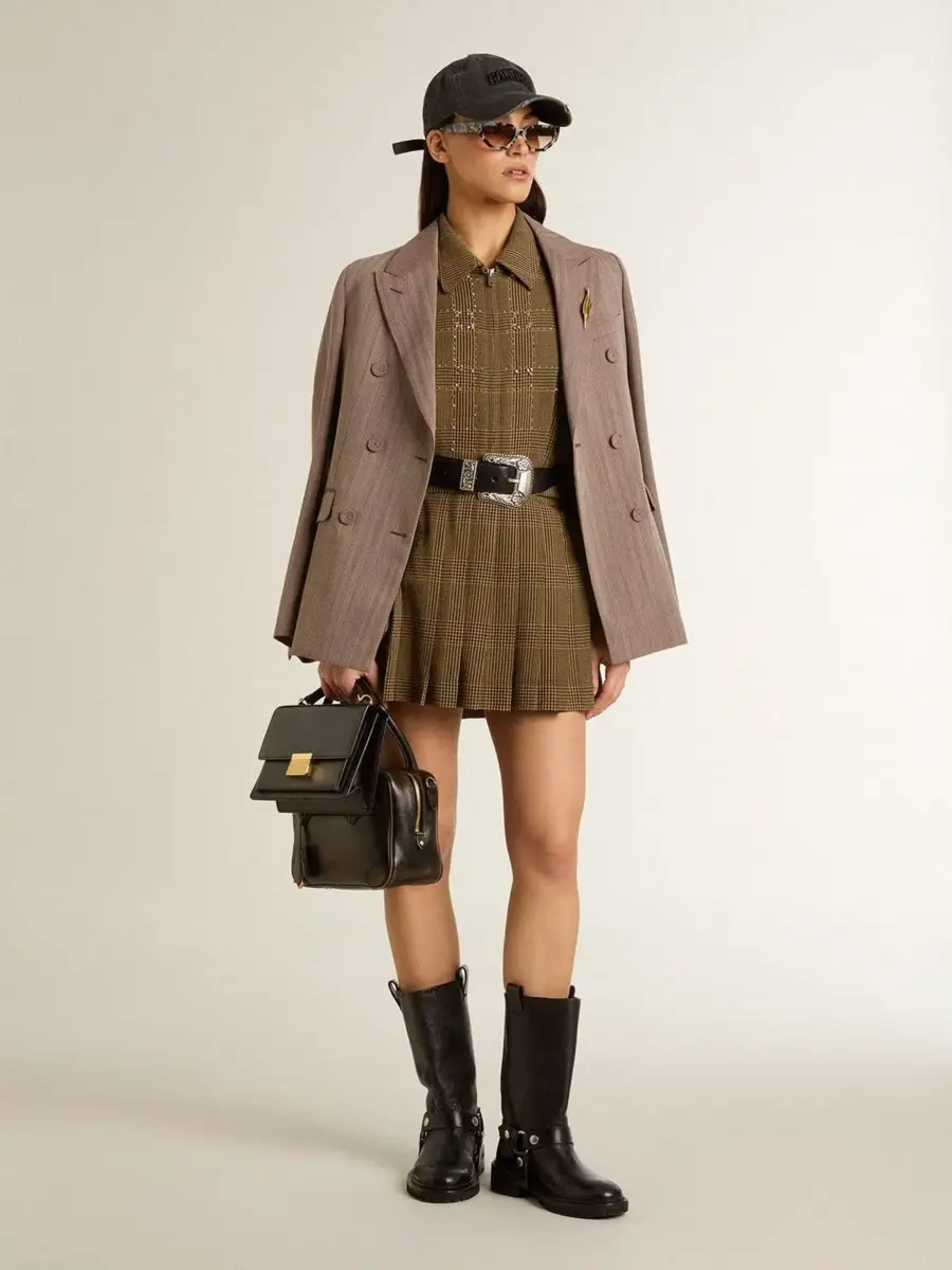 Sé el primero en valorar “Blazer cruzado de mujer en mezcla de lana beige con diseño chevron”