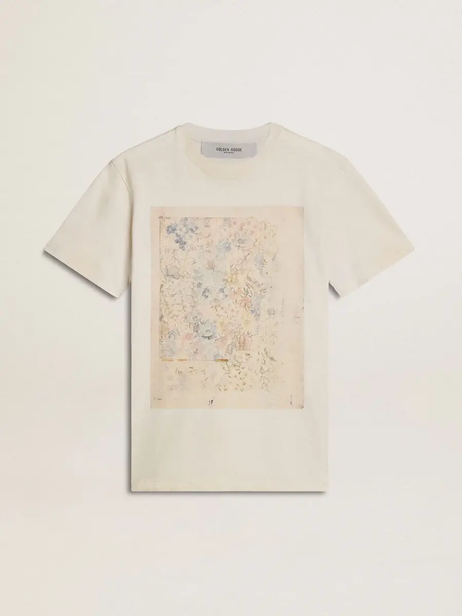 Inspirada en los icónicos años setenta, el espíritu desenfadado de esa época cobra vida con el primer lanzamiento de nuestra colección Otoño/Invierno 25. Esta camiseta blanca de corte recto presenta un estampado frontal con un motivo floral multicolor. La doble estrella en la espalda le da el toque final.