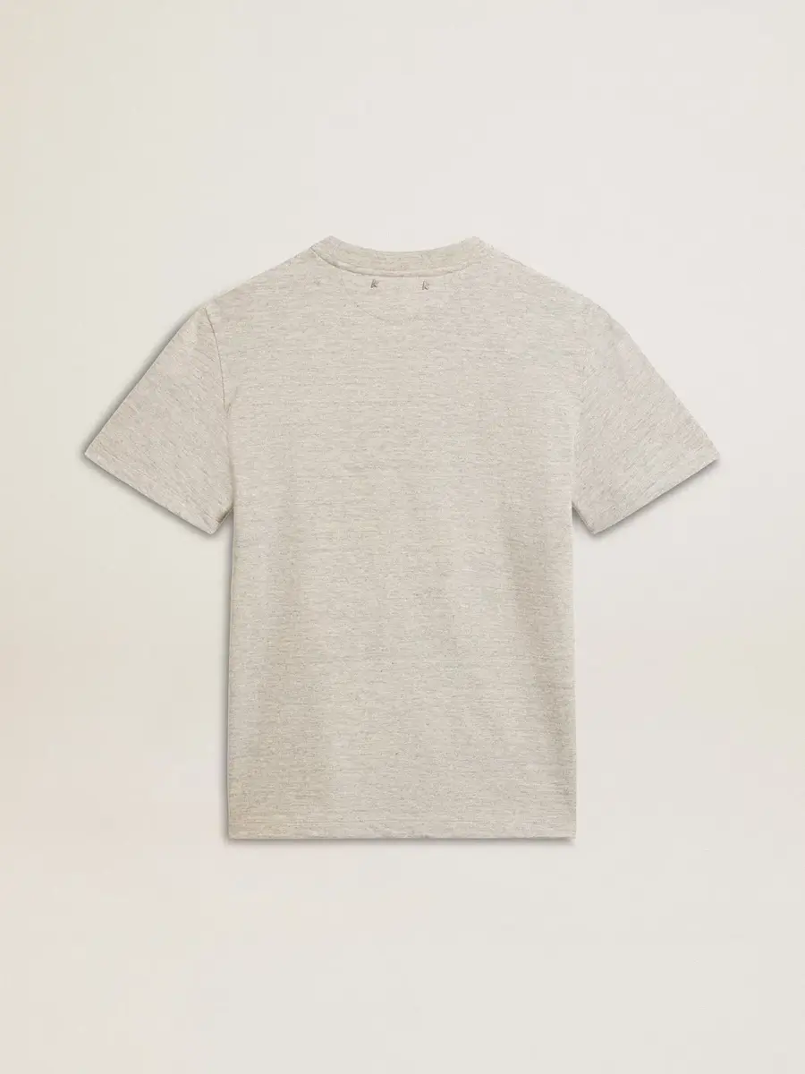 Una historia de amor con nuestra ciudad natal, Marghera. Donde todo comenzó. Nuestra última colección refleja el espíritu de nuestro lugar de origen, sus contrastes, su alma industrial y sus paisajes manufactureros, entrelazando inspiraciones tanto de la vibrante energía de la ropa de trabajo como de la refinada esencia de la sastrería tradicional. Confeccionada en jersey de algodón gris jaspeado, esta camiseta de mujer presenta un estampado descolorido «Golden Happiness Brewery» a base de agua en la parte delantera.