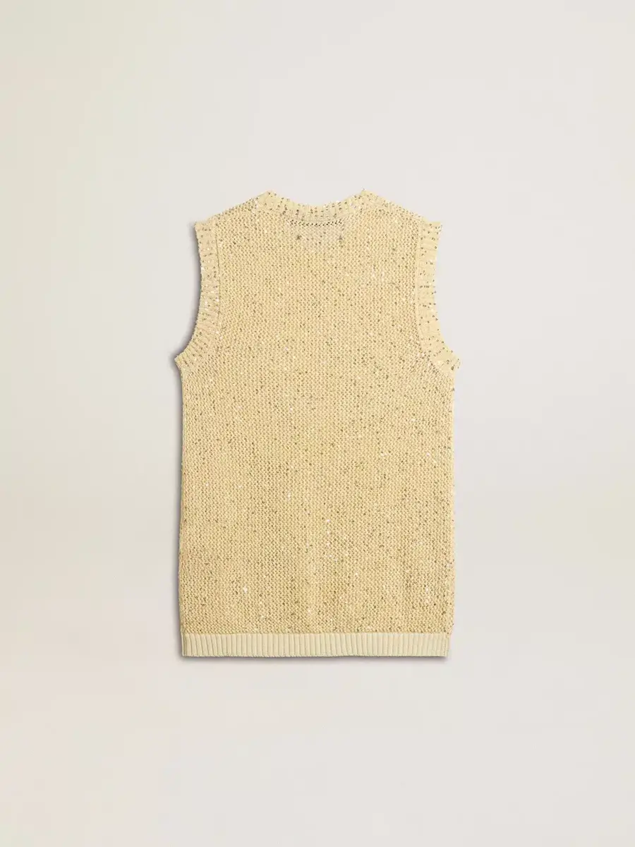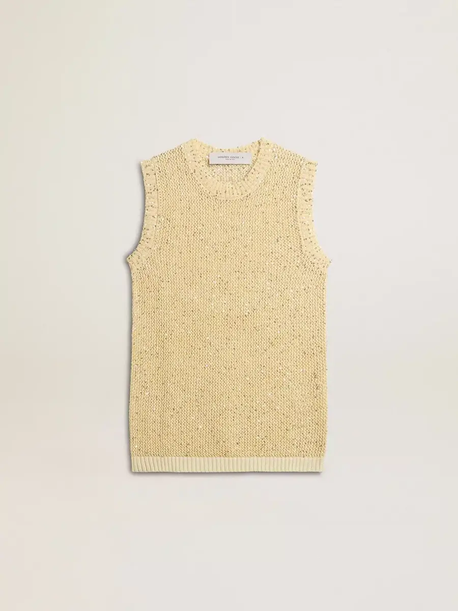 Una historia de amor con nuestra ciudad natal, Marghera. Donde todo comenzó. Nuestra última colección refleja el espíritu de nuestro lugar de origen, sus contrastes, su alma industrial y sus paisajes manufactureros, entrelazando inspiraciones tanto de la vibrante energía de la ropa de trabajo como de la refinada esencia de la sastrería tradicional. Este top de punto de malla de corte regular con lentejuelas está confeccionado con una técnica de costura especial que permite que las lentejuelas queden en el exterior de la prenda y no estén en contacto directo con la piel. El cuello redondo presenta detalles de algodón acanalado en el dobladillo.