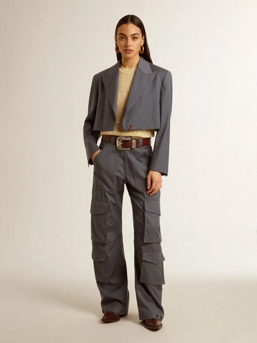 La modelo mide 177 cm y lleva una talla S.