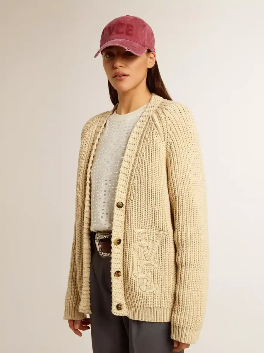 Una historia de amor dedicada a nuestra ciudad natal, Marghera. Donde todo comenzó. Nuestra última colección refleja el espíritu de nuestro lugar de origen, sus contrastes, su alma industrial y sus paisajes manufactureros, entrelazando inspiraciones tanto de la vibrante energía de la ropa de trabajo como de la refinada esencia de la sastrería tradicional. Este cárdigan abierto de algodón color pergamino se caracteriza por el uso de diferentes técnicas de tejido, una prenda típica de las universidades estadounidenses. Las letras VCE bordadas en la parte delantera añaden el toque final.